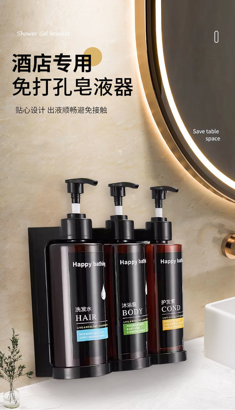 免打孔皂液器洗手液挂壁器按压分装瓶酒店装洗发水沐浴露壁挂瓶子