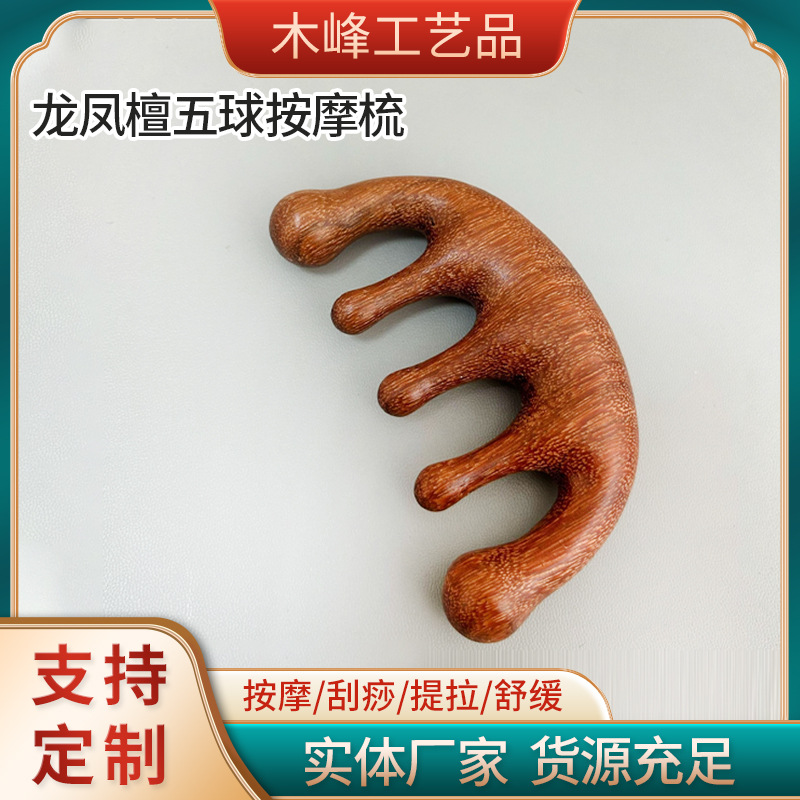 竜鳳檀五球鹿角熊手檀木櫛頭皮経絡五歯マッサージ櫛頭部養髪治療檀木