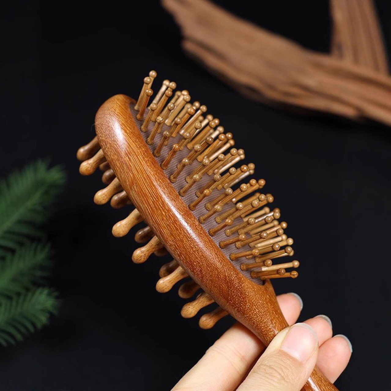 双面檀木气垫梳蓬松美发气囊梳顺发长短发按摩家用钉钉梳实木无漆