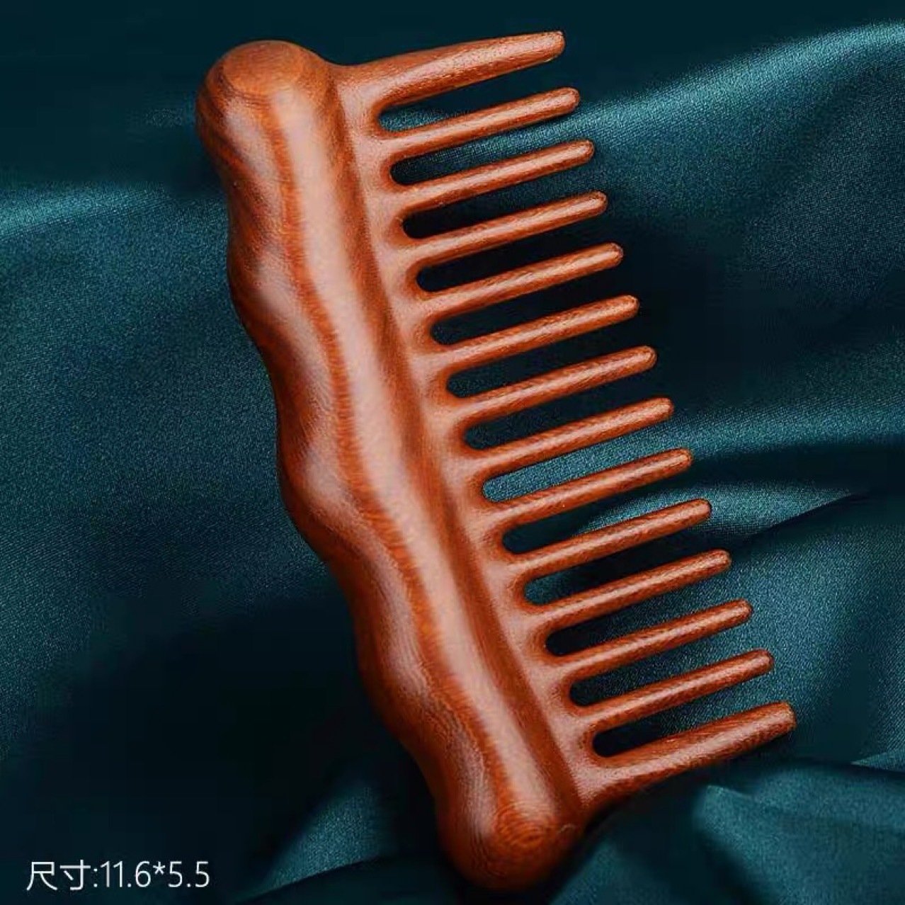 厚みのある白檀の広歯マッサージコーム、巻き毛パーマコーム、多機能スクレーピングコーム、ポータブルバッグコーム、長さ12.5CM