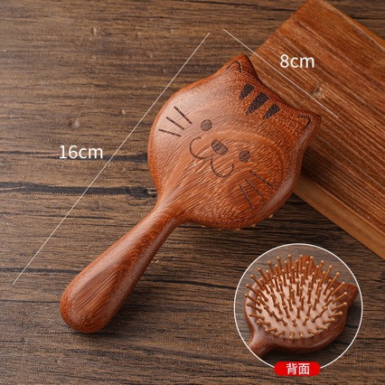 檀木梳子小猫气囊梳气垫梳可爱木头部经络按摩梳便携