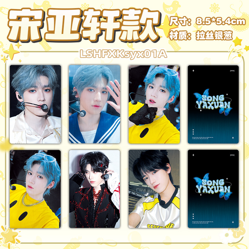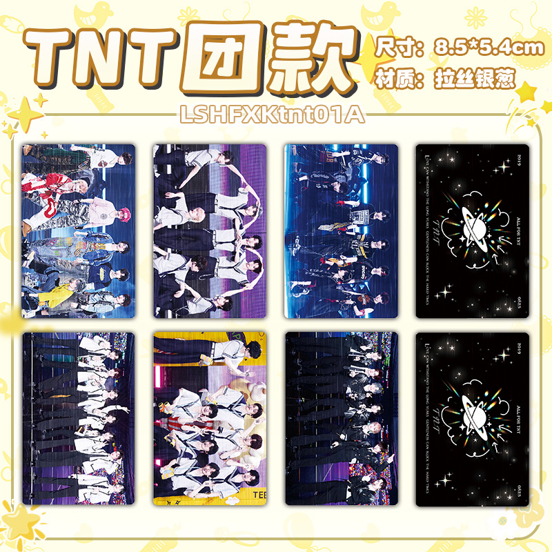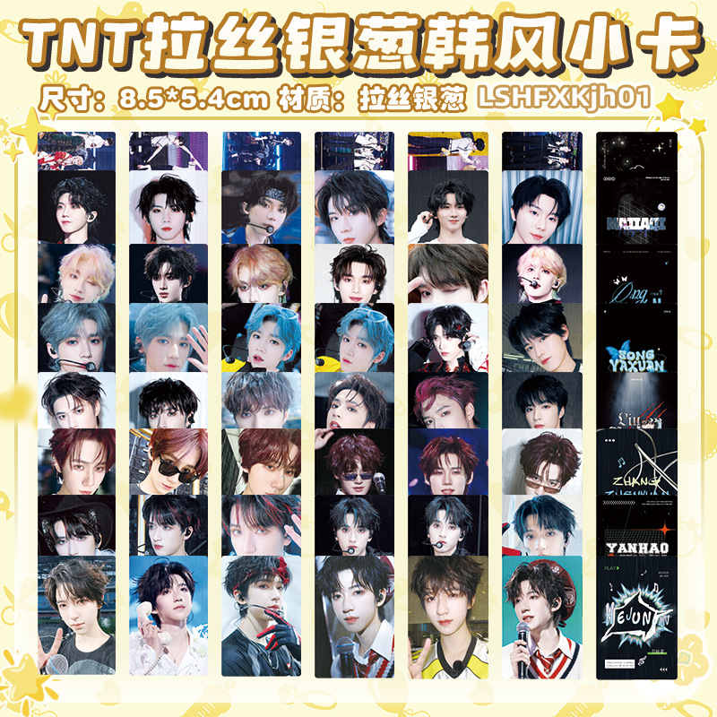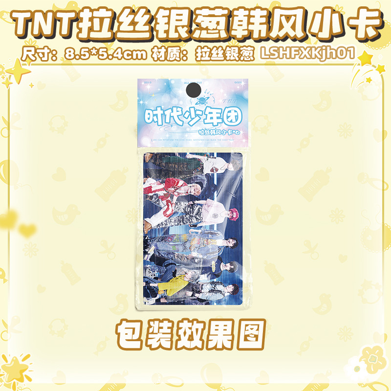 款式 【TNT】拉丝韩风小卡(共6件),【马嘉祺】拉丝韩风小卡(共6件),【丁程鑫】拉丝韩风小卡(共6件),【宋亚轩】拉丝韩风小卡(共6件),【刘耀文】拉丝韩风小卡(共6件),【张真源】拉丝韩风小卡(共6件),【严浩翔】拉丝韩风小卡(共6件),【贺峻霖】拉丝韩风小卡(共6件)