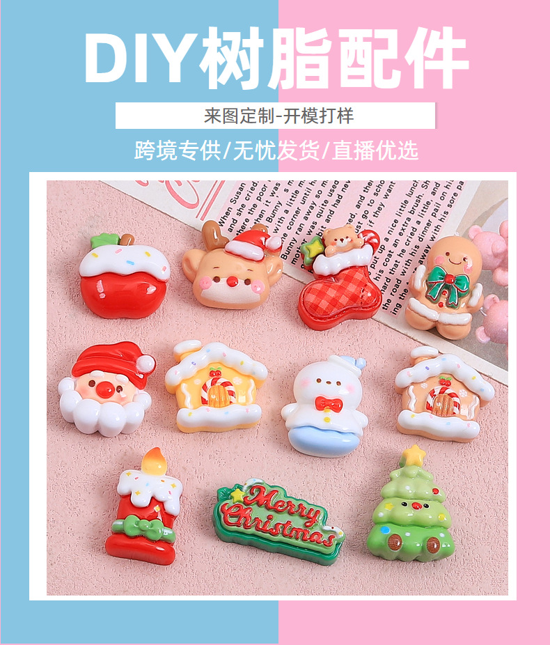 漫画風光沢クリスマス子供っぽい手作りDIYクリーム接着剤携帯電話ケースヘアピン飾り樹脂アクセサリー卸売