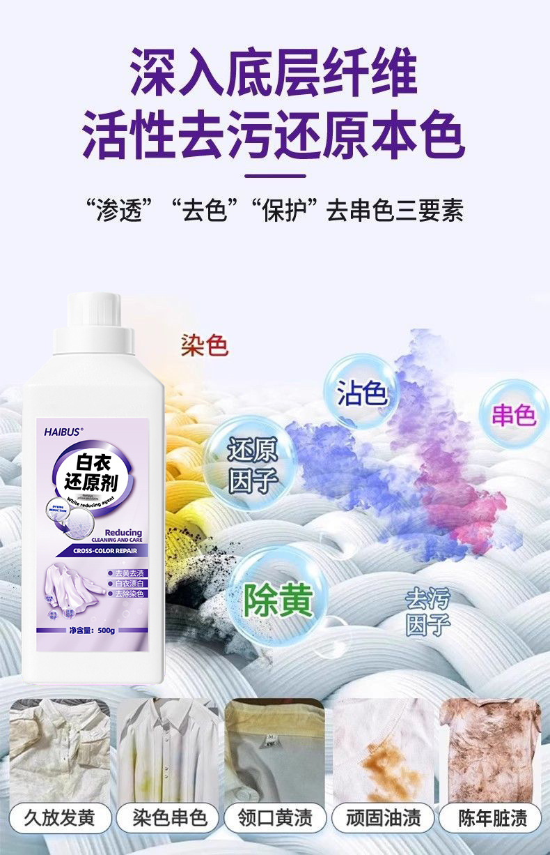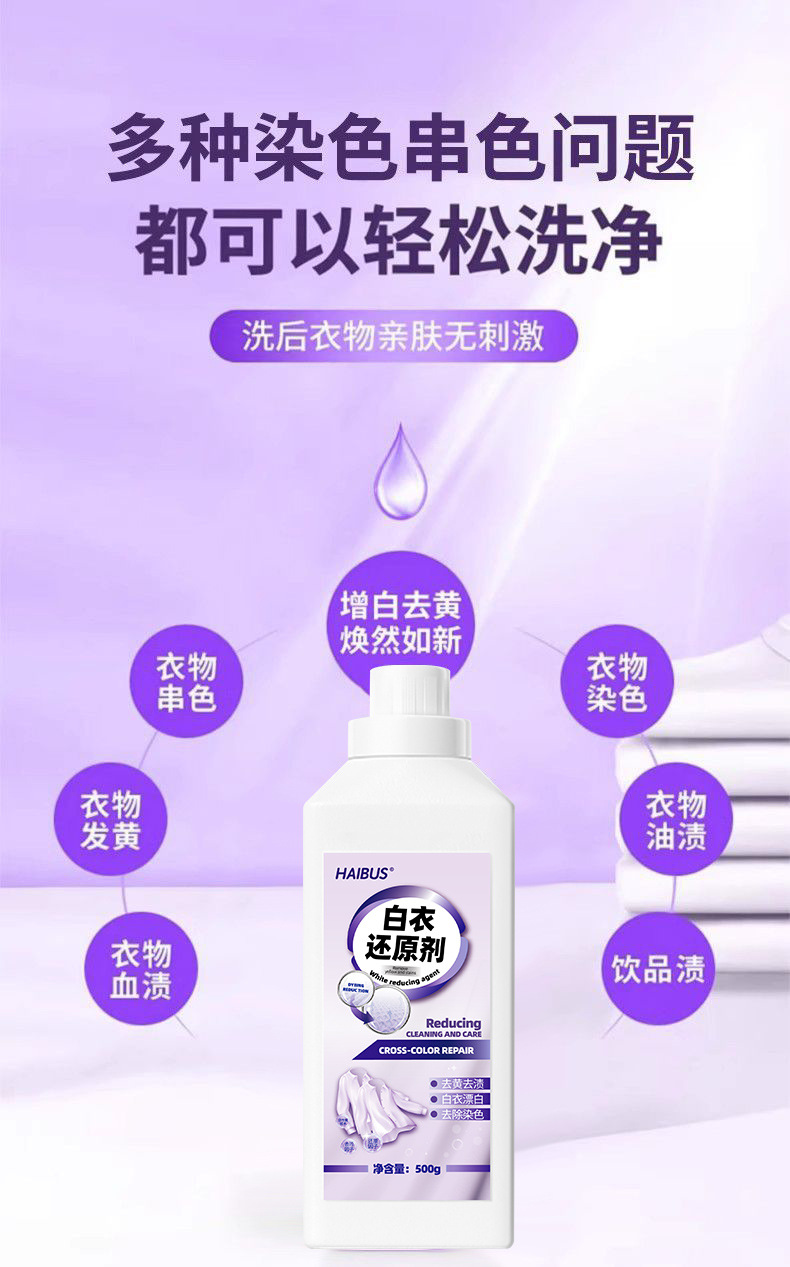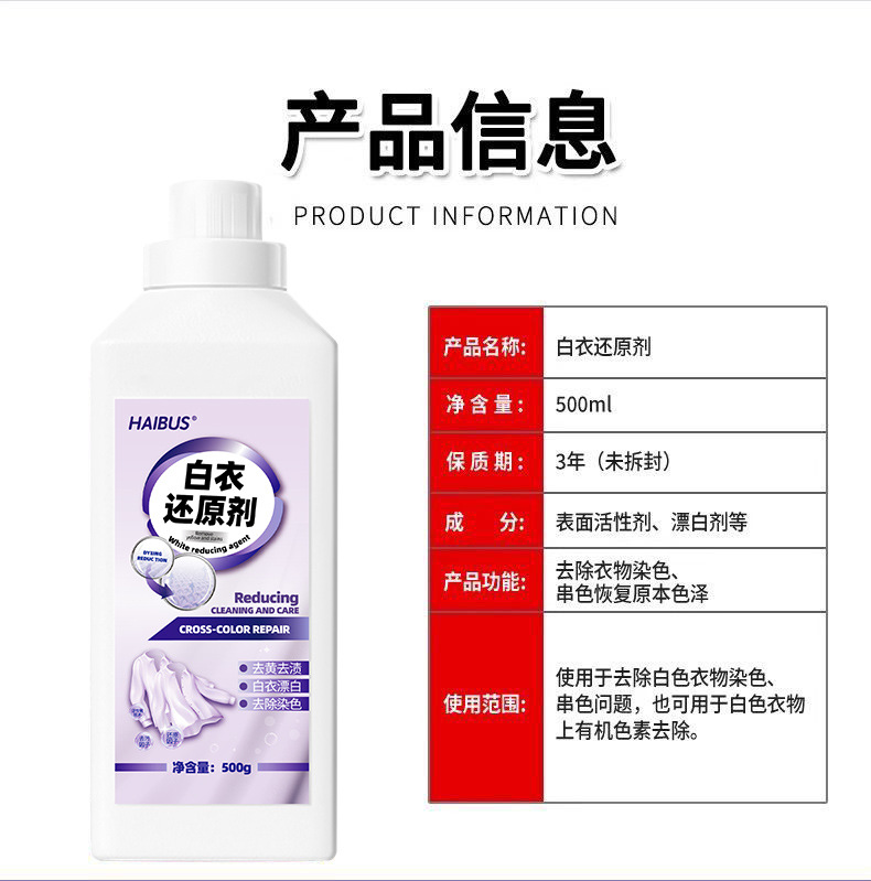 海布森白衣还原剂去染色串色去黄增白衣救星强力去污渍家用漂白剂