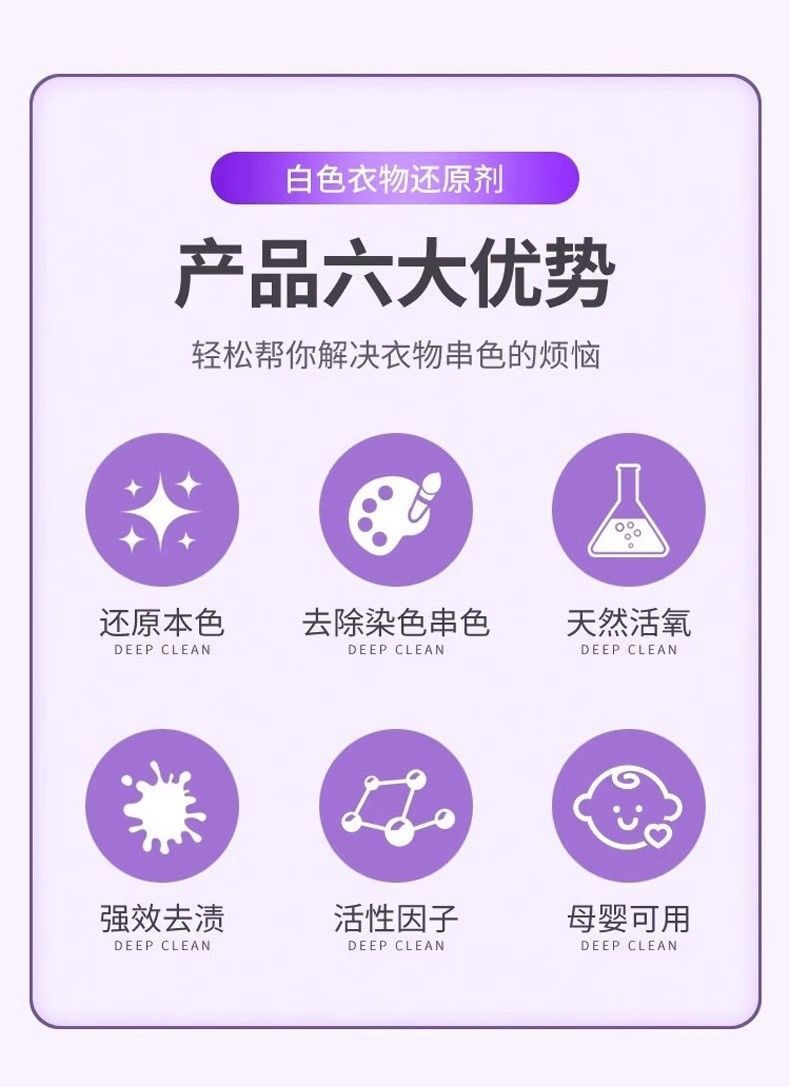 白衣还原剂漂白去渍去黄增白白色衣物服染色去除强力去污洗白神器