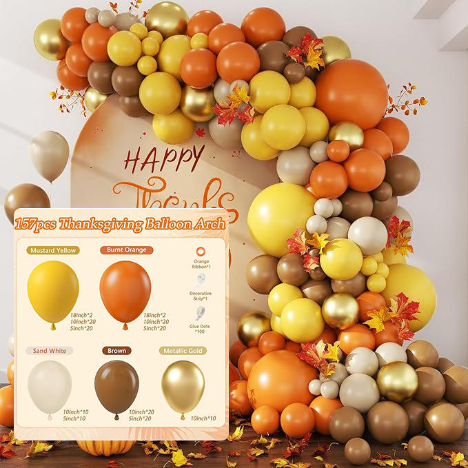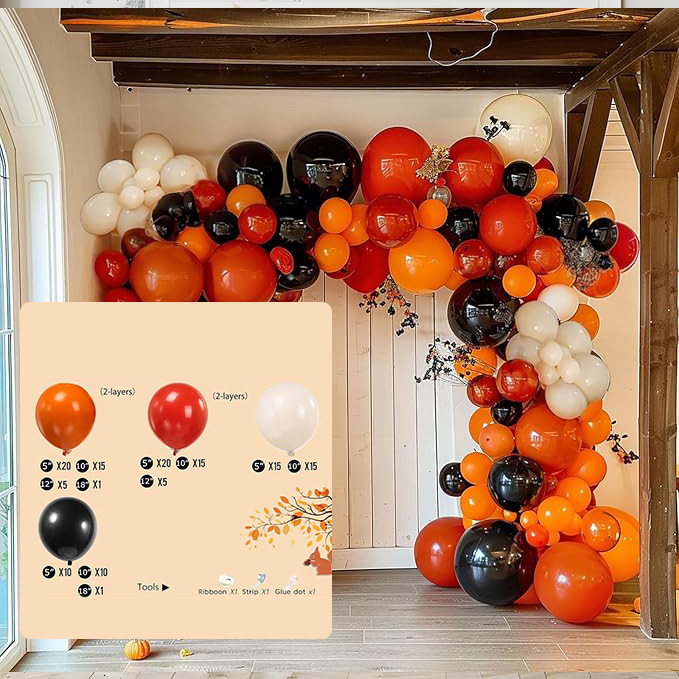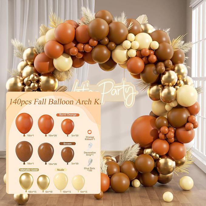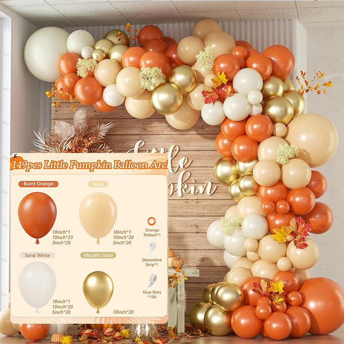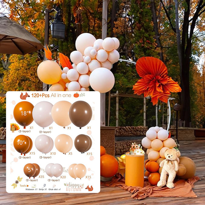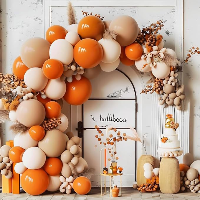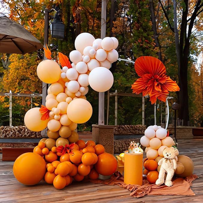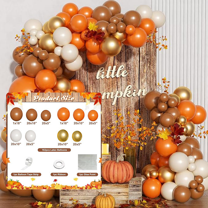 复古橙色气球拱门套装感恩节气球链秋季主题派对生日结婚场景布置