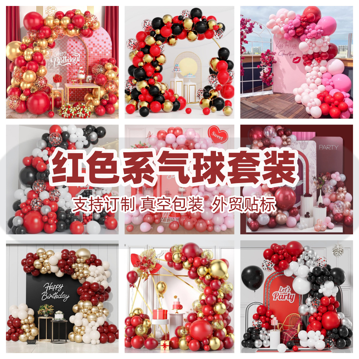 红色气球套装生日周年庆商场店铺开业气球拱门氛围布置品乳胶气球