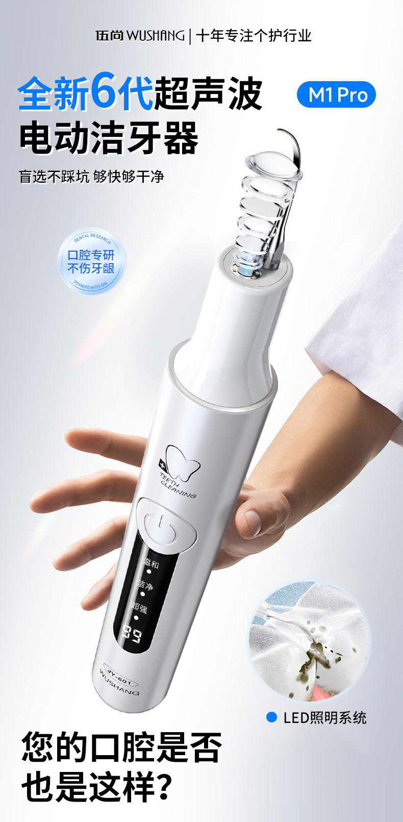 伍尚跨境冲牙器电动迷你清理口腔清洁牙齿去除污垢超声波冲牙器