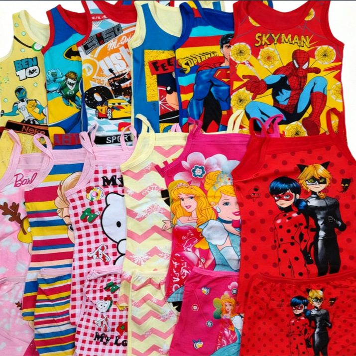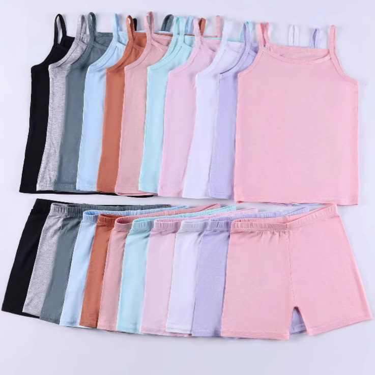 夏用可愛いライクラ綿A級男女兼用子供用ベストノースリーブショートパンツ下着2点セット