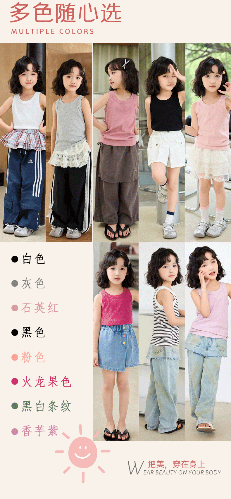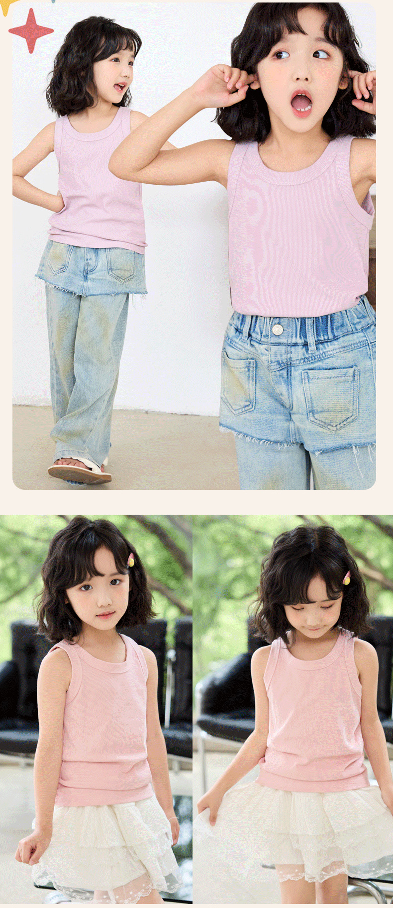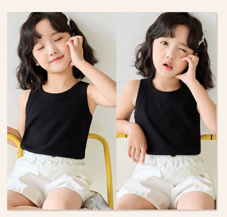 27kids韩版童装新款2025儿童纯色背心夏广告衫无图案儿童衣服