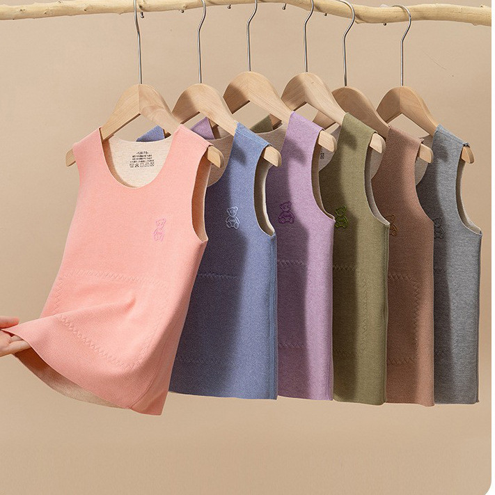 2025秋冬儿童羊毛蚕丝保暖背心男童内穿贴片马甲女童打底护肚上衣
