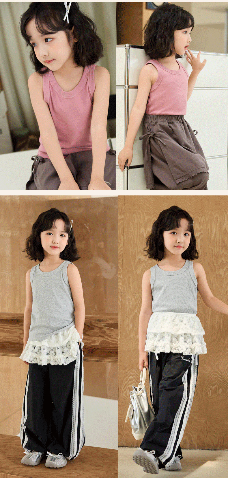 子供の夏のモーダルベストの女の子のストラップの夏の薄いタイプの5歳の赤ちゃんの白いボトム8の女の子の綿のタイプ