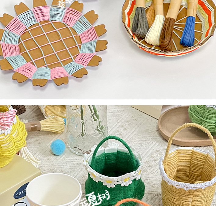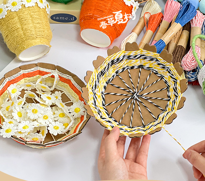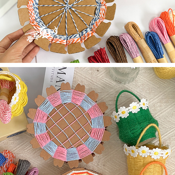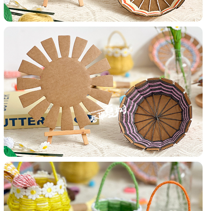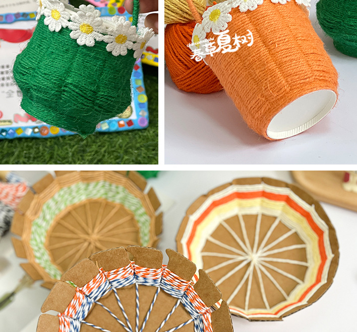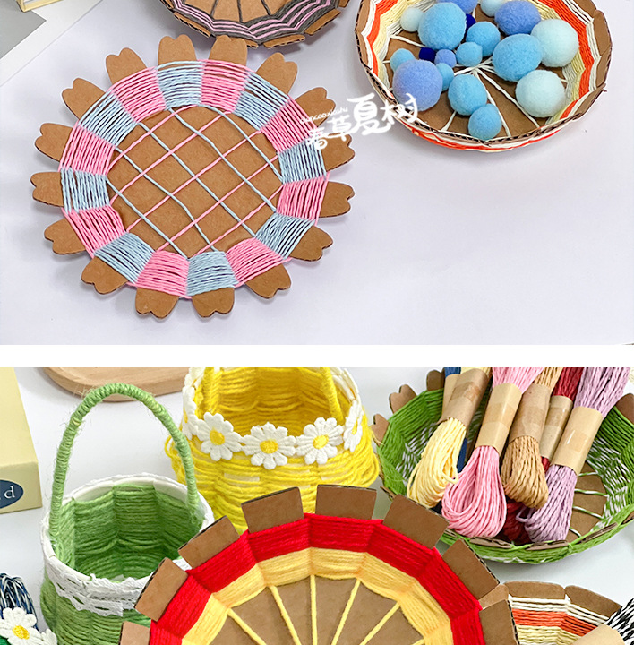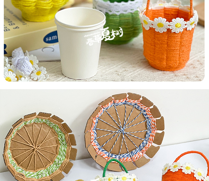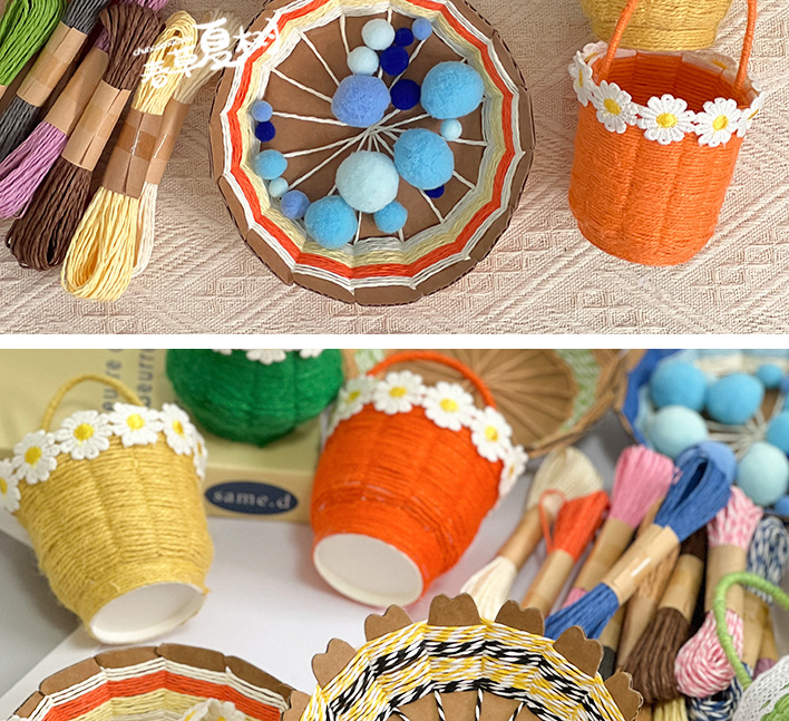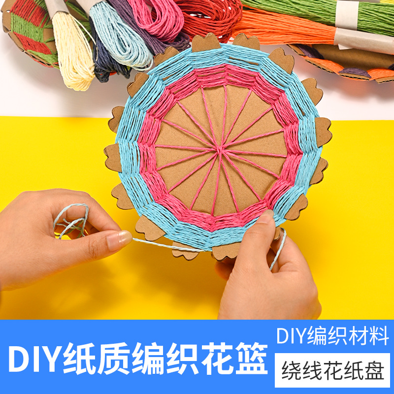 纸绳纸卡编织花篮幼儿园儿童手工自制diy制作材料包创意互动玩具
