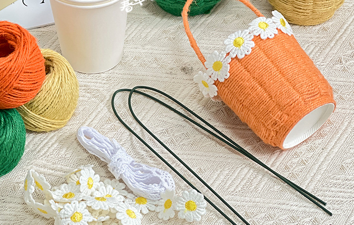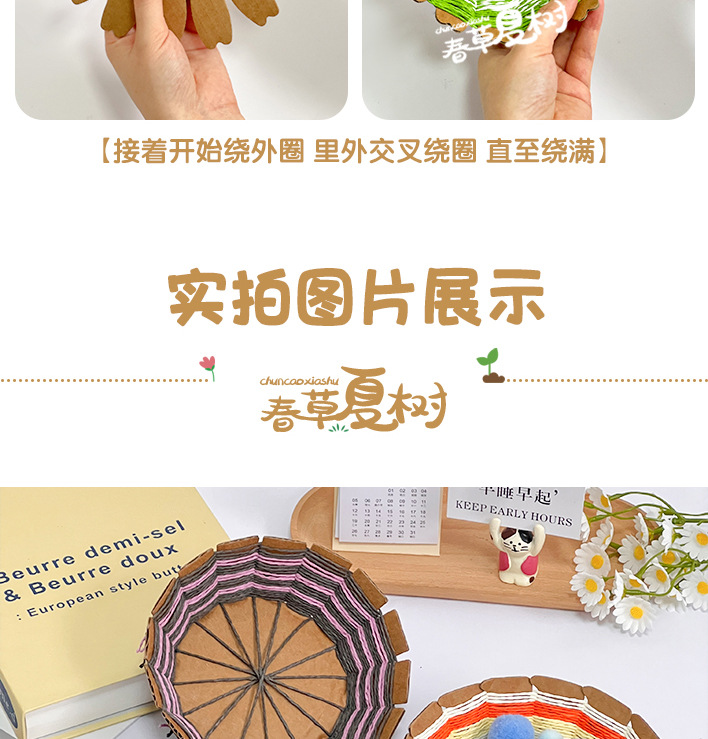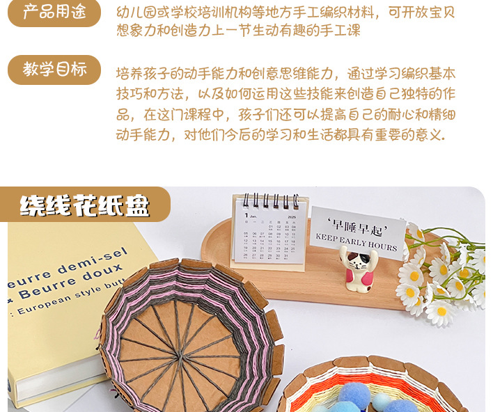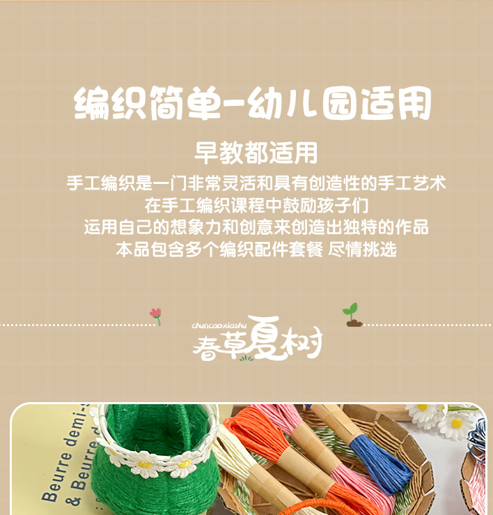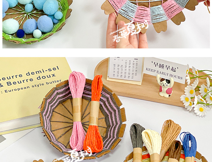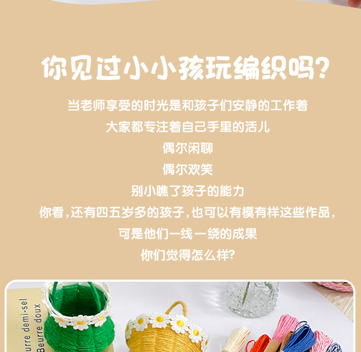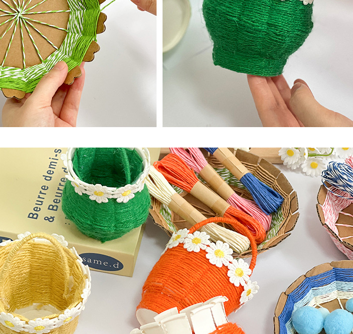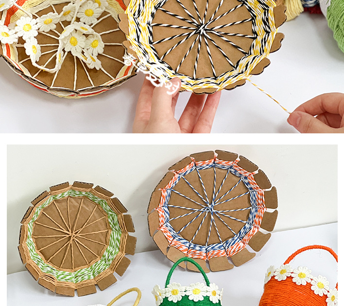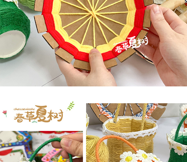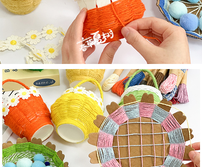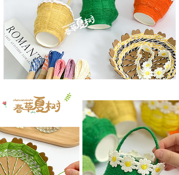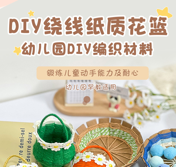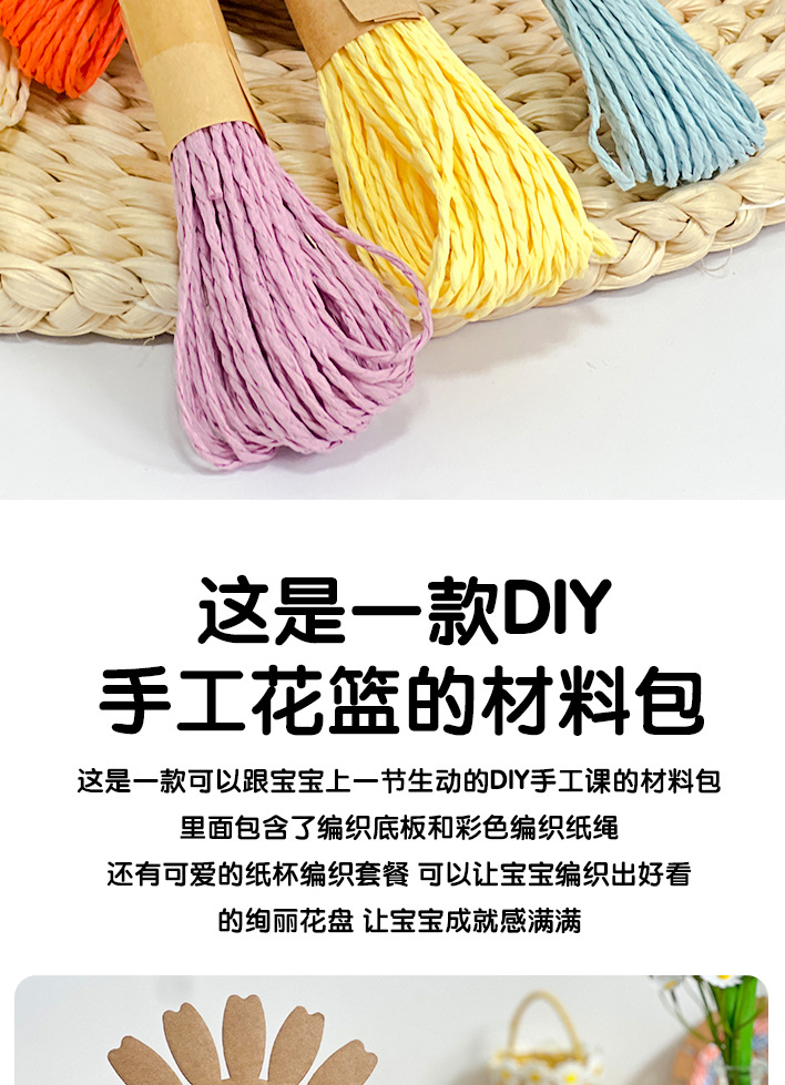 幼儿园儿童创意手工diy纸绳纸卡编织花篮自制玩具材料包区域投放