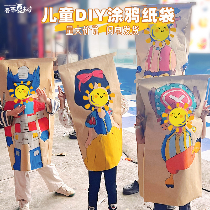 新年親子活動幼稚園手作りdiy厚手絵大落書きクラフト紙袋ショー服飾り