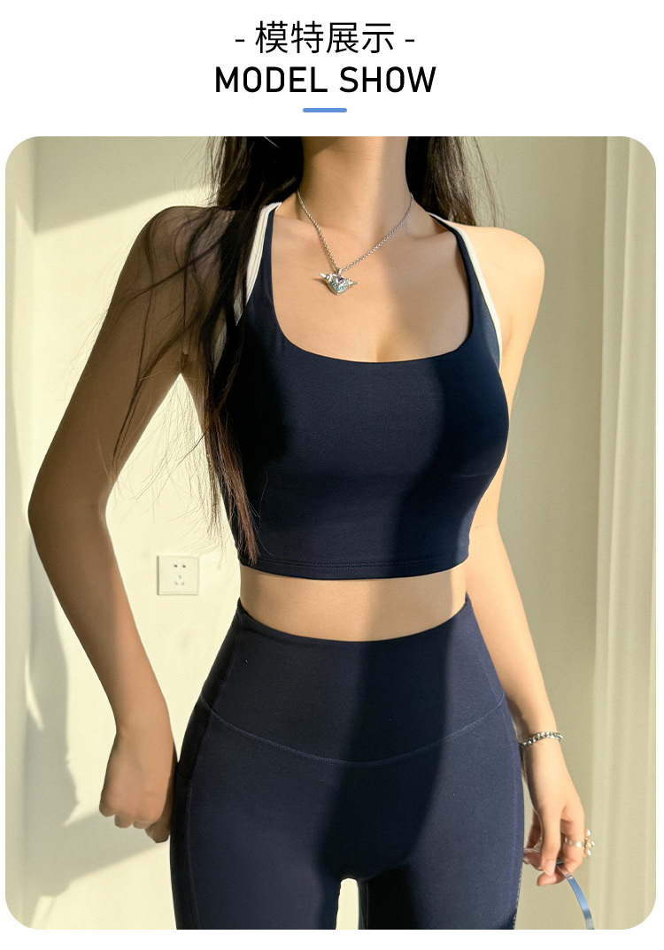 可调节肩带瑜伽挂脖式运动内衣速干透气防震背心女健身服T字美背