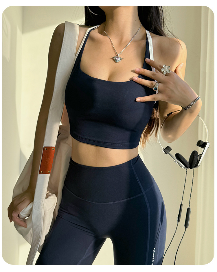 ヨガベスト女性の韓国フィットネスプッシュアップ耐衝撃薄型ストラップ一体型胸パッドアウターウェアファッショナブルな美しいバックランニングブラ