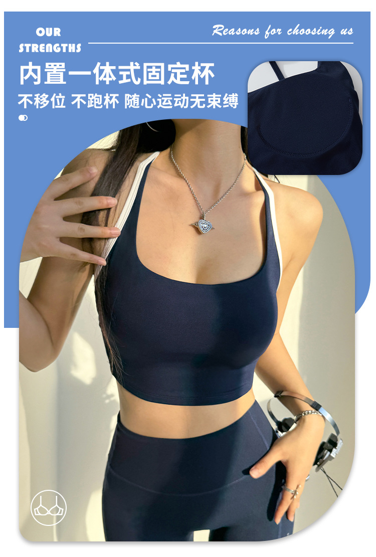 固定杯细肩带美背运动内衣女防震拼色瑜伽服背心跑步训练健身文胸