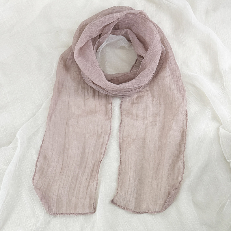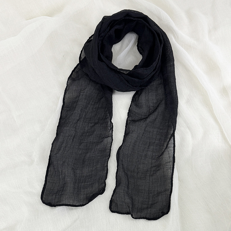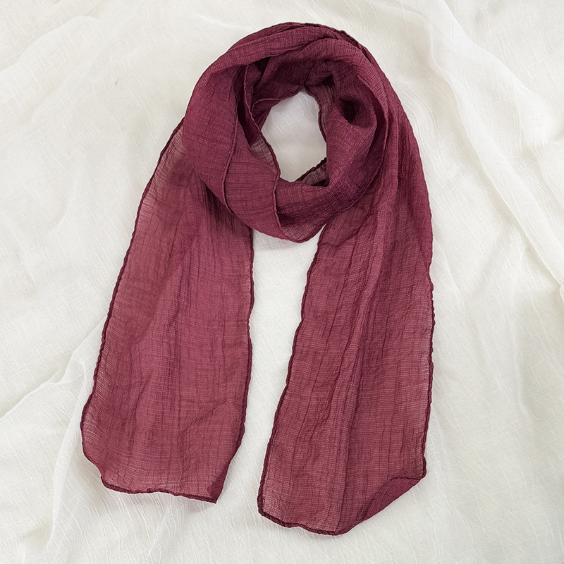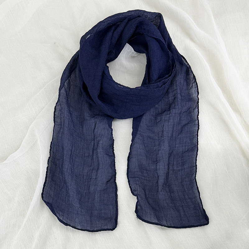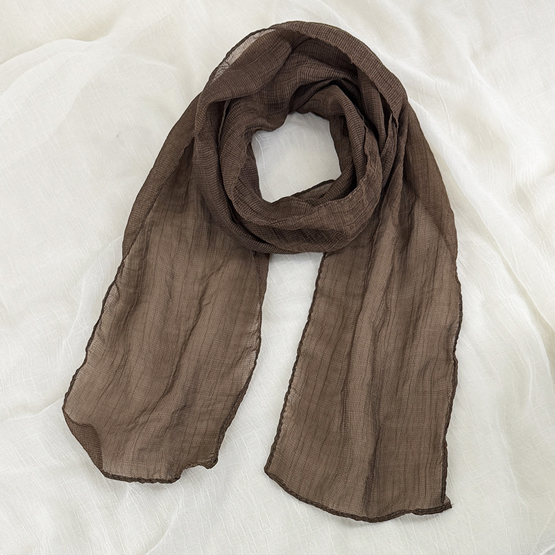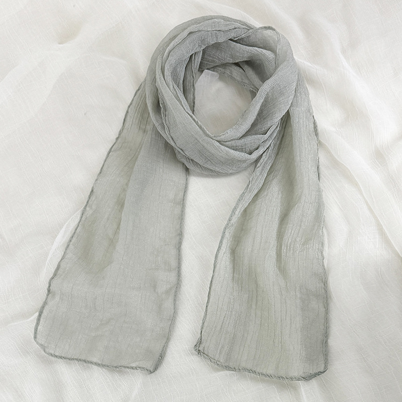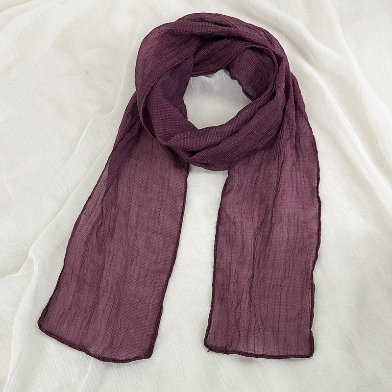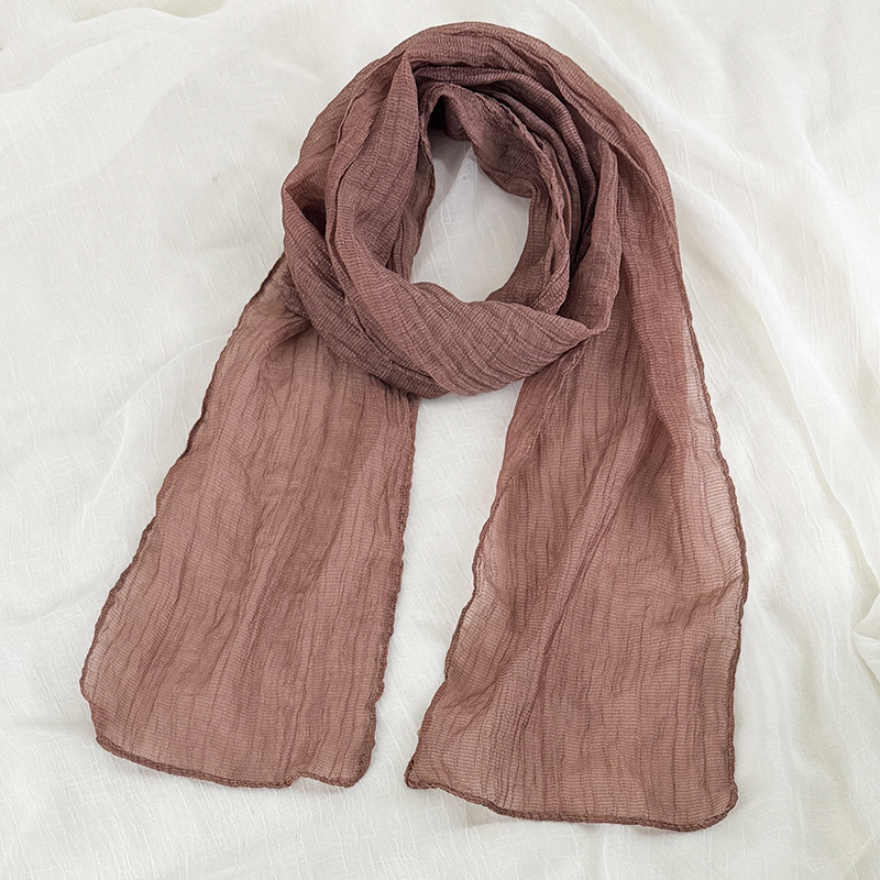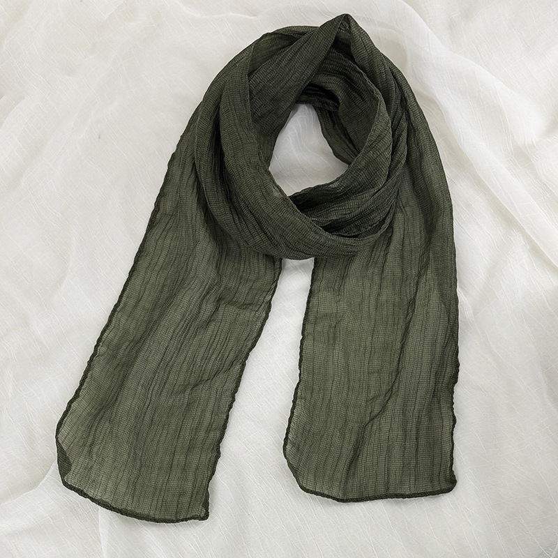 跨境热销秋季新款单色皱布丝巾气质百搭时髦复古文艺时髦装饰领巾