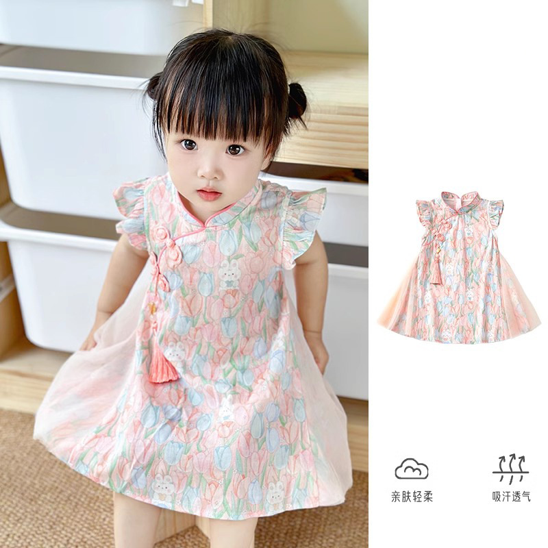 女の子ドレスサマードレス 2025 新しい子供のプリンセスドレスチャイナドレス漢服ベビー誕生日 1 歳のドレス夏