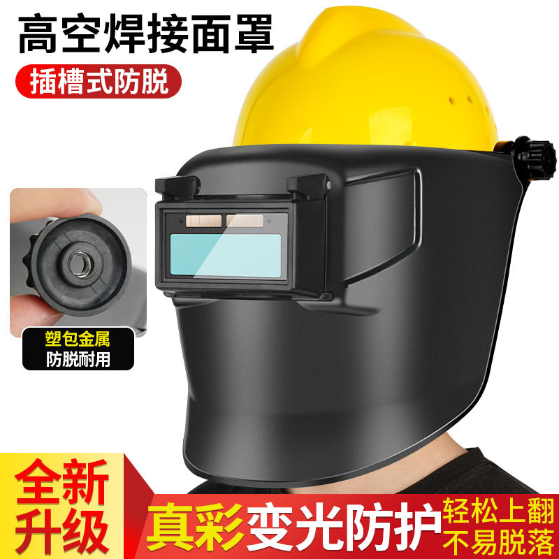 溶接マスク、自動遮光、ヘルメット付きヘッドマウントフルフェイス保護、高所溶接工用の特別な溶接帽子