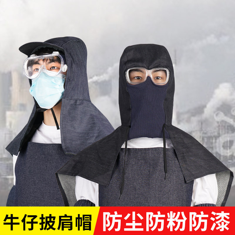 迷彩マントフード、防塵労働保護デニムショールフード、防塵、工業用防塵研削マスク、通気性と耐摩耗性