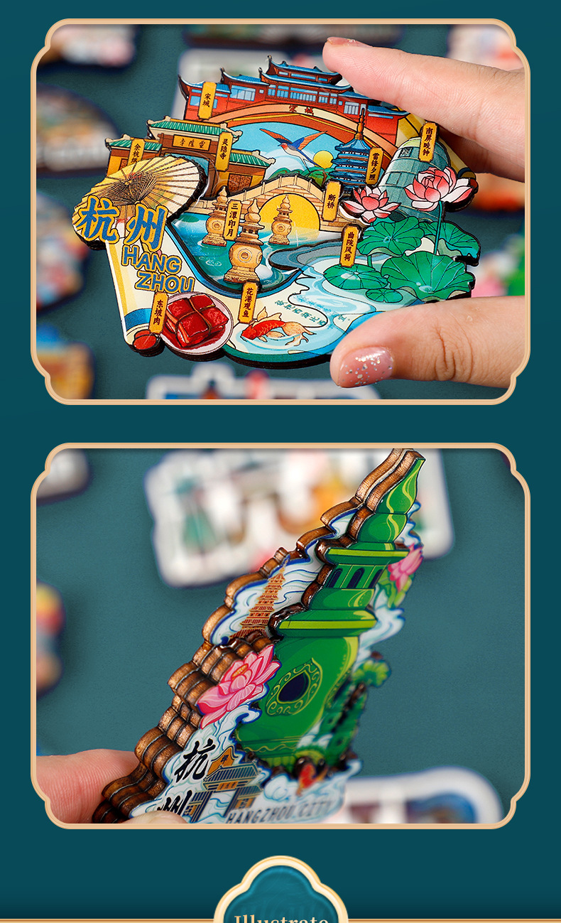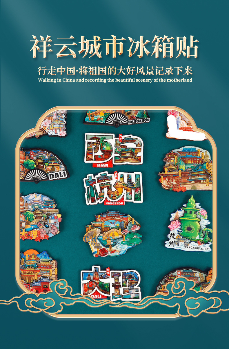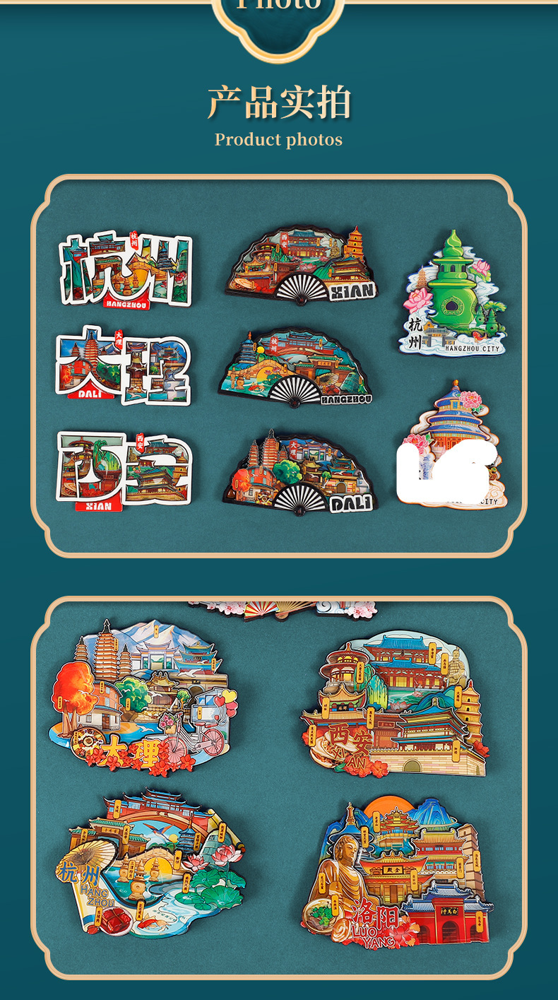 河南郑州木质文创冰箱贴中国城市旅游磁吸贴创意立体装饰贴纪念品