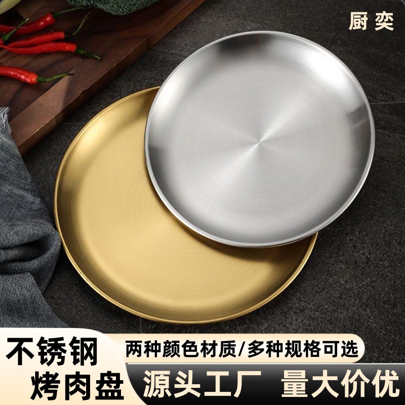 韓国式304ステンレス円盤商用金色焼肉皿果物ケーキ皿骨皿浅い皿