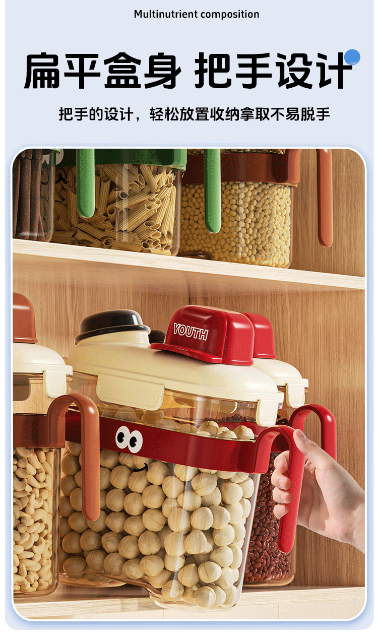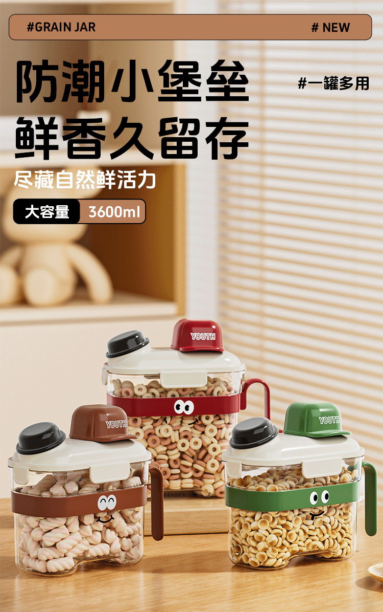 新款卡通杂粮罐五谷杂粮罐收纳盒厨房零食坚果干果小米桶收纳盒罐
