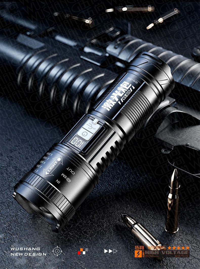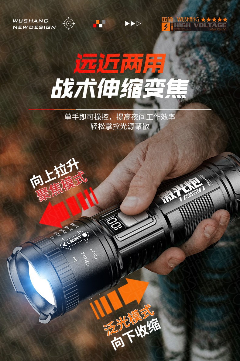 多機能強光懐中電灯充電携帯型知能デジタル表示爆発量遠射ズームUSB超亮懐中電灯