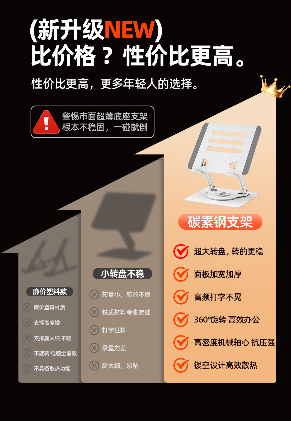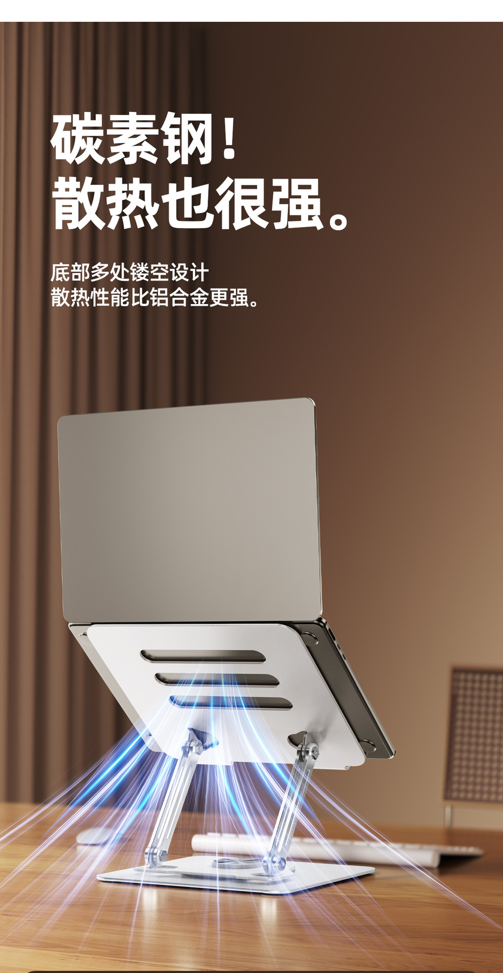 【ターボ放熱】ノートパソコンのスタンドは立っています。放熱ベースの炭素鋼は昇降できます。