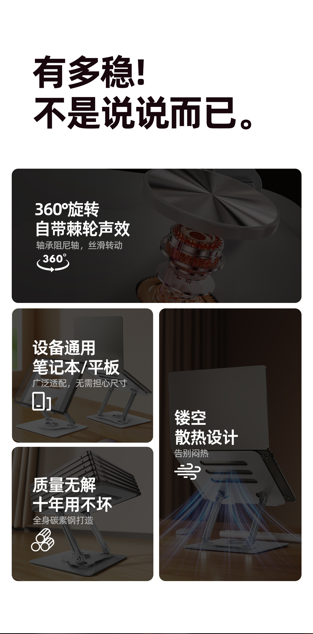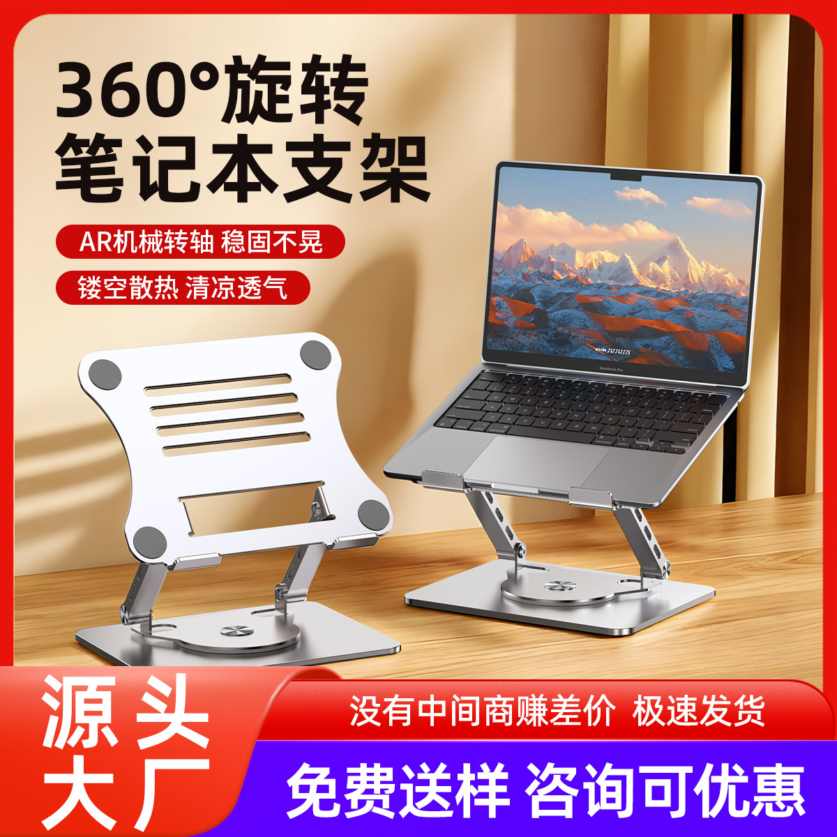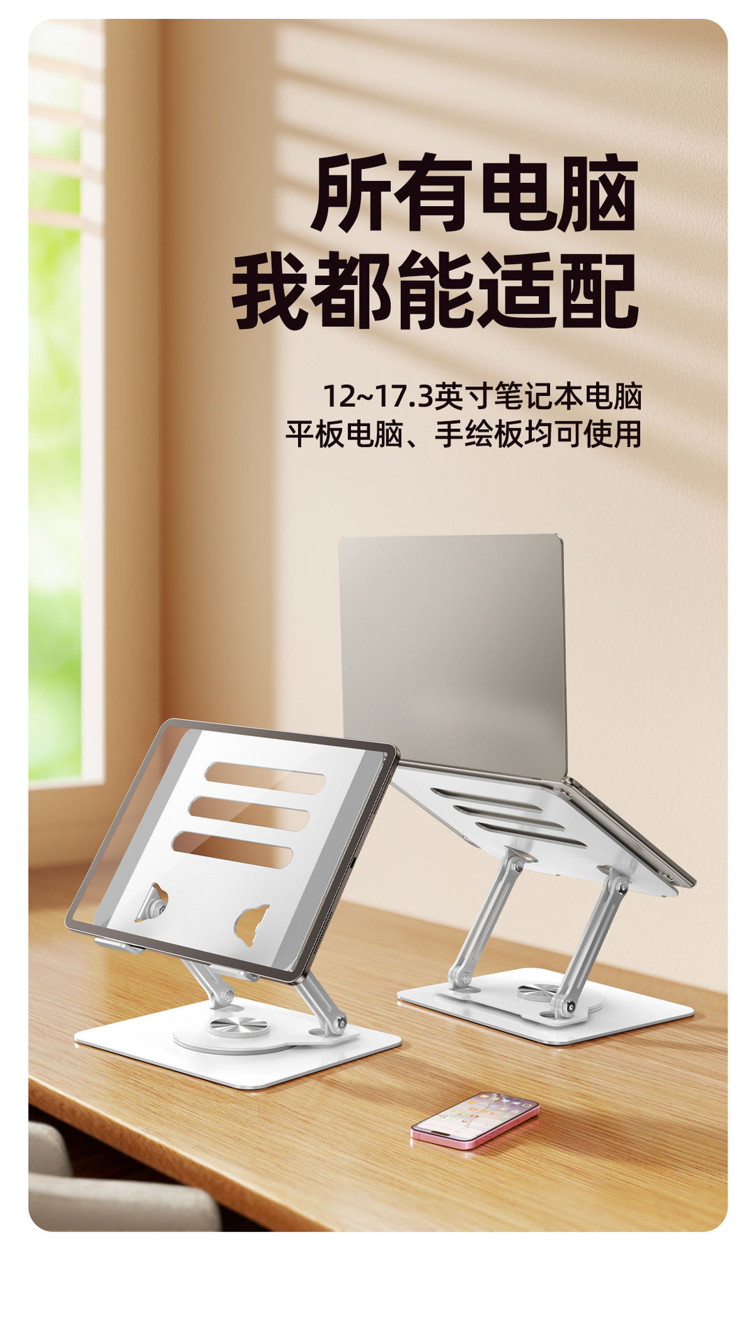 电脑支架桌面360º旋转折叠金属散热架可升降游戏笔记本电脑支架