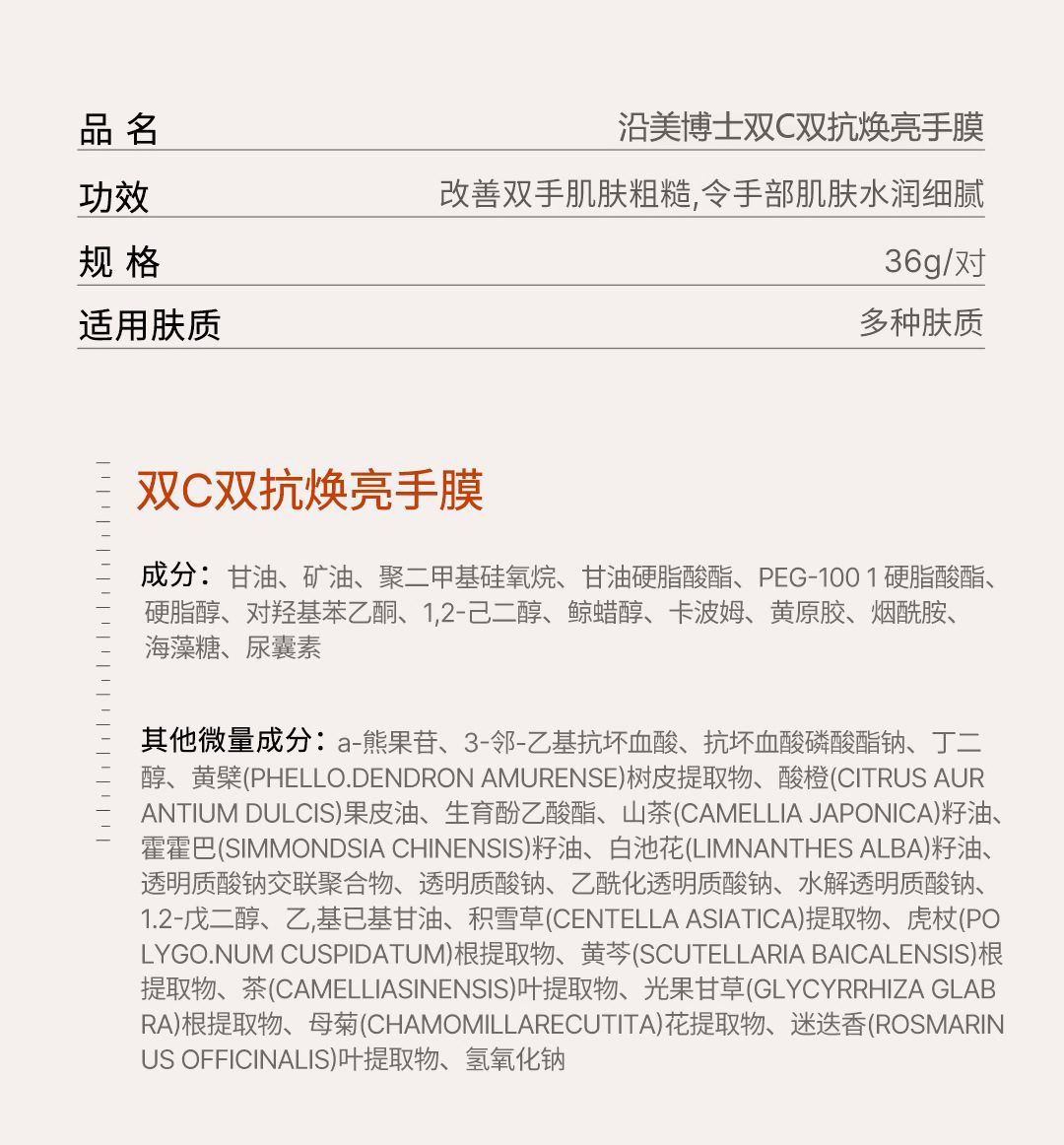 沿美博士双C双抗焕亮手膜 淡细纹改善暗黄粗糙嫩肤院线护理手足膜