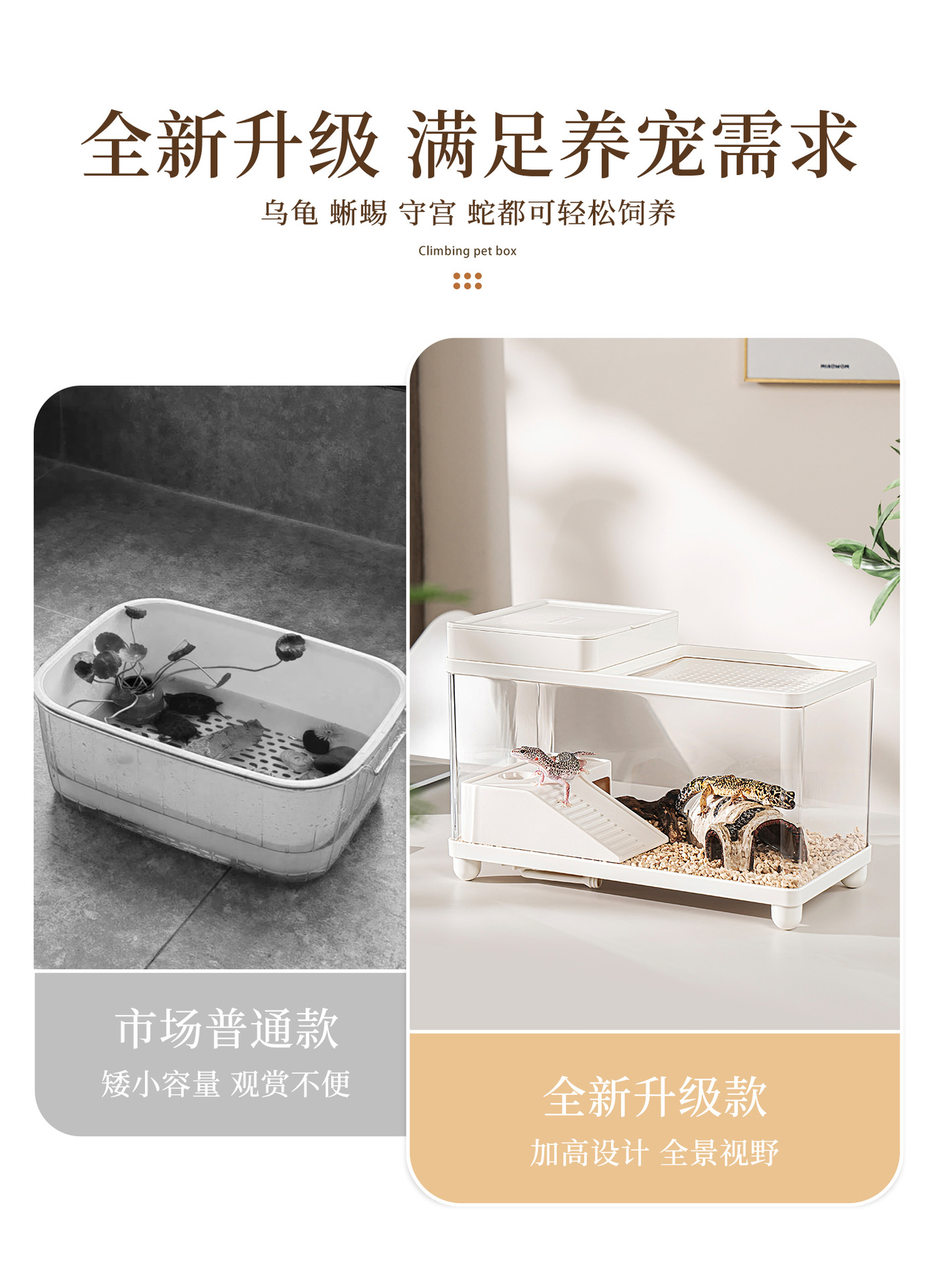 乌龟饲养缸生态造景过滤家用带盖寄居蟹缸爬台两用用箱巴西龟缸