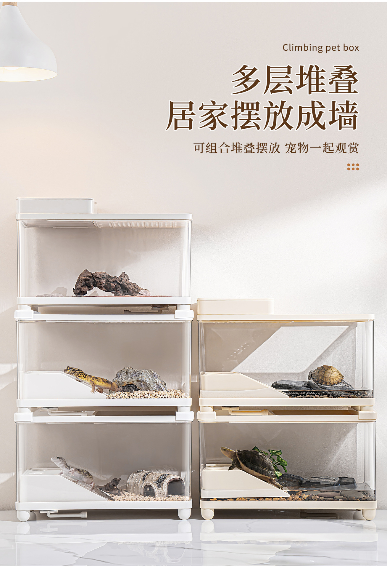 乌龟饲养缸生态造景家用带盖鱼缸爬宠爬台大容量养殖箱可叠加龟缸