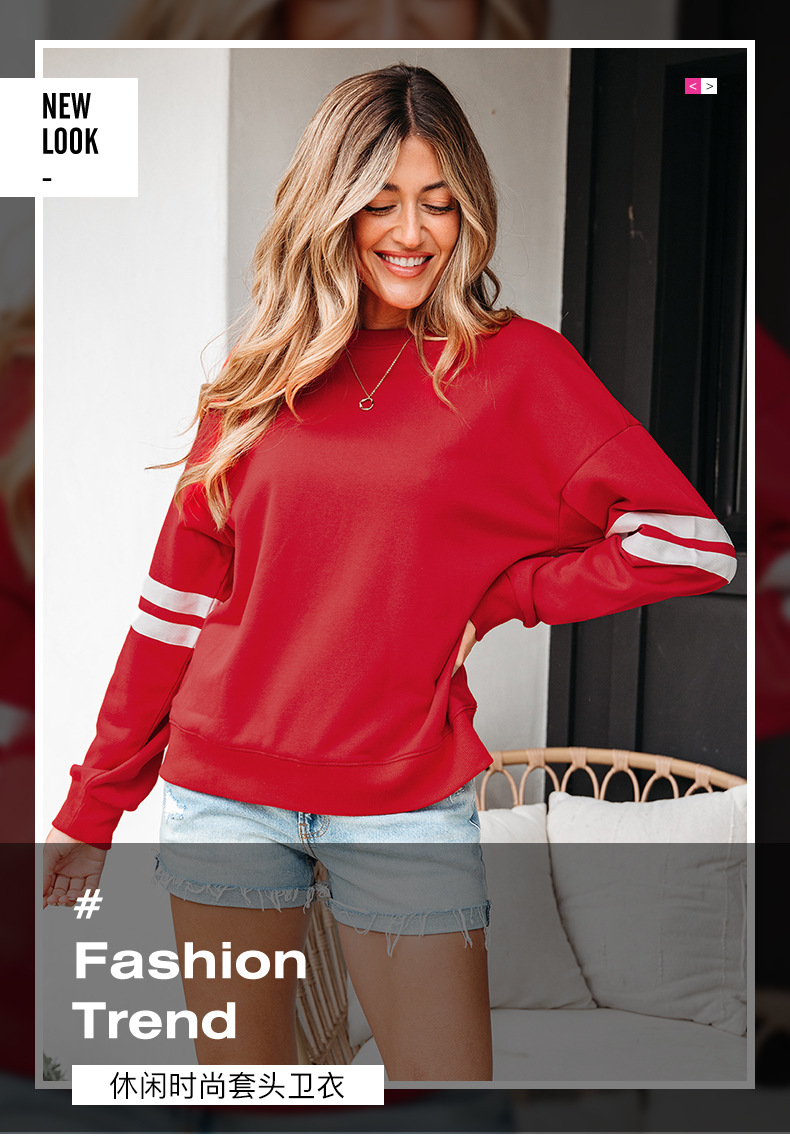 时颖欧美长袖卫衣跨境宽松休闲拼接套头新款圆领针织套头衫女