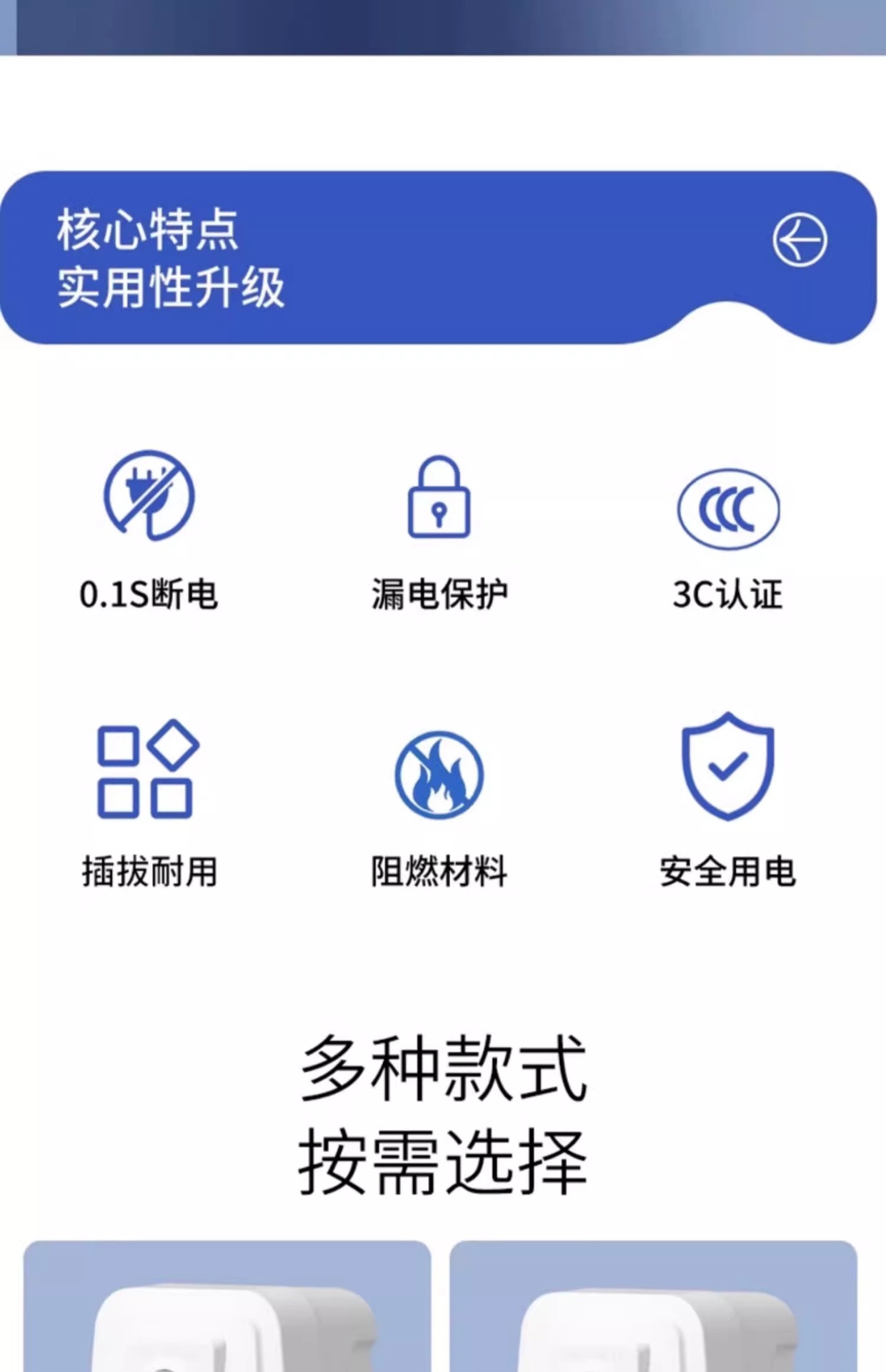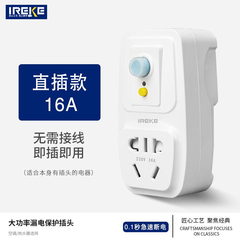 漏电保护插座0.1秒断电16A插头漏保热水器专用16A直插款漏保
