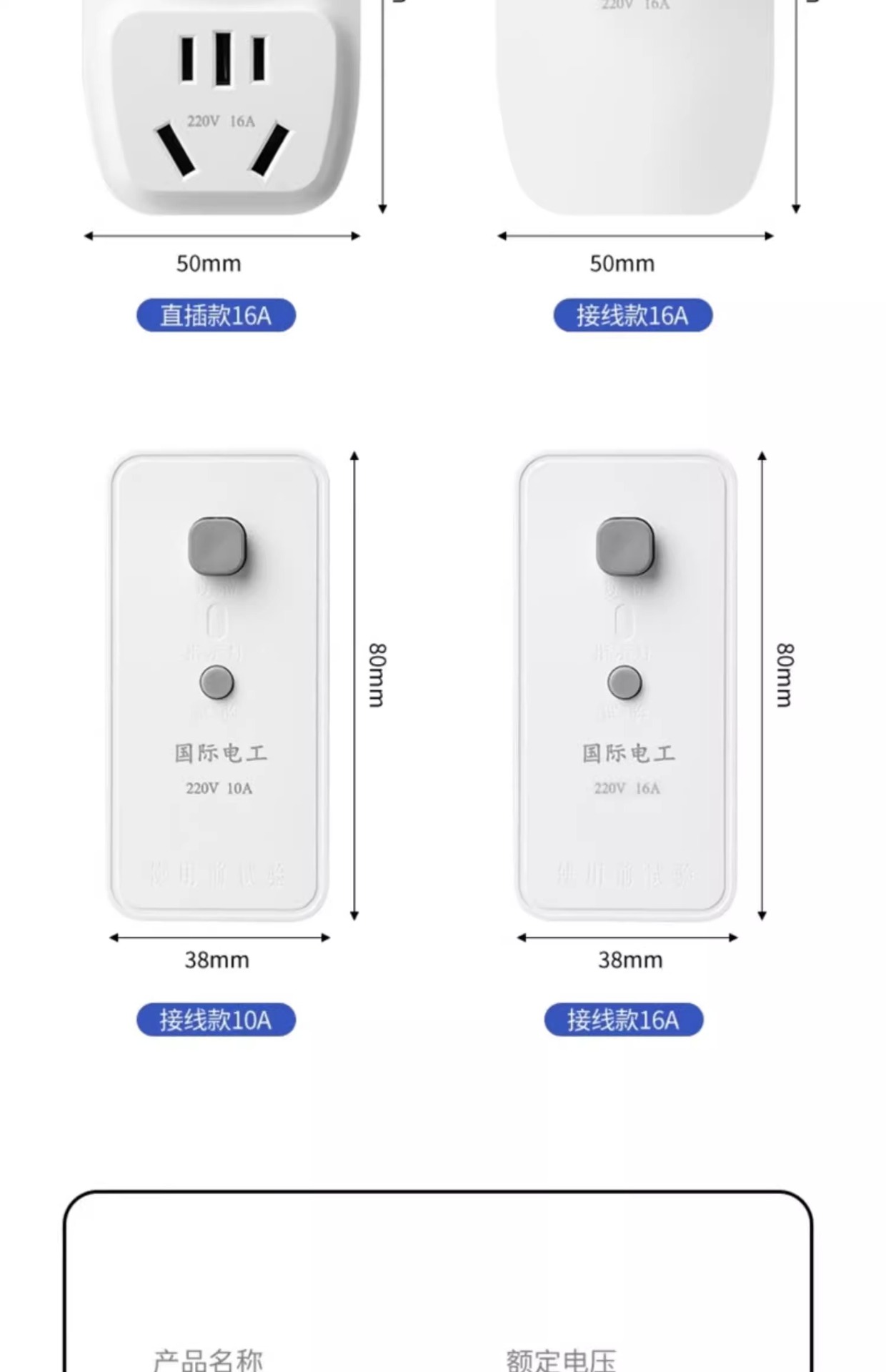 规格 漏保插头转换器 10A转10A,漏保插头转换器 16A转16A,接线式漏保插头-10A,接线式漏保插头-16A