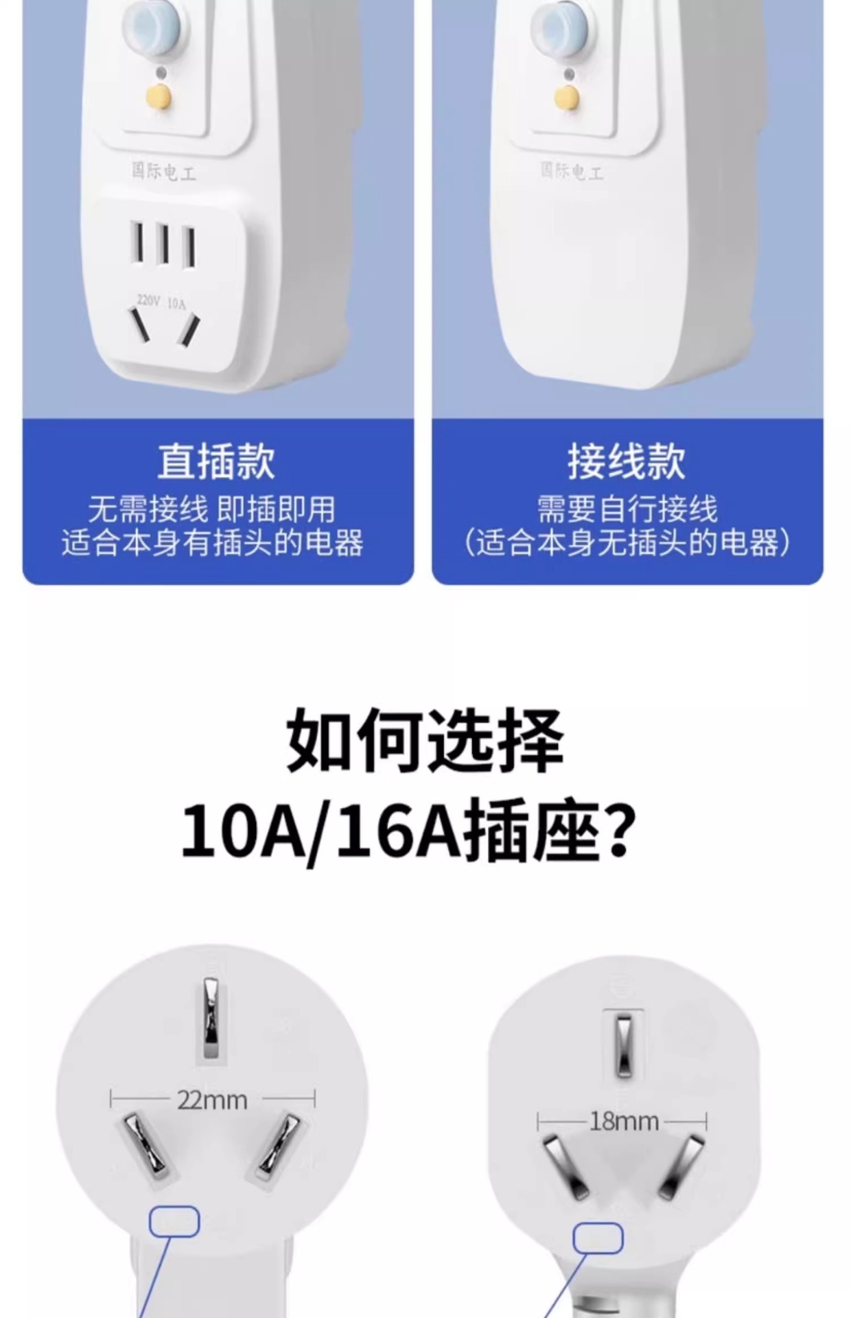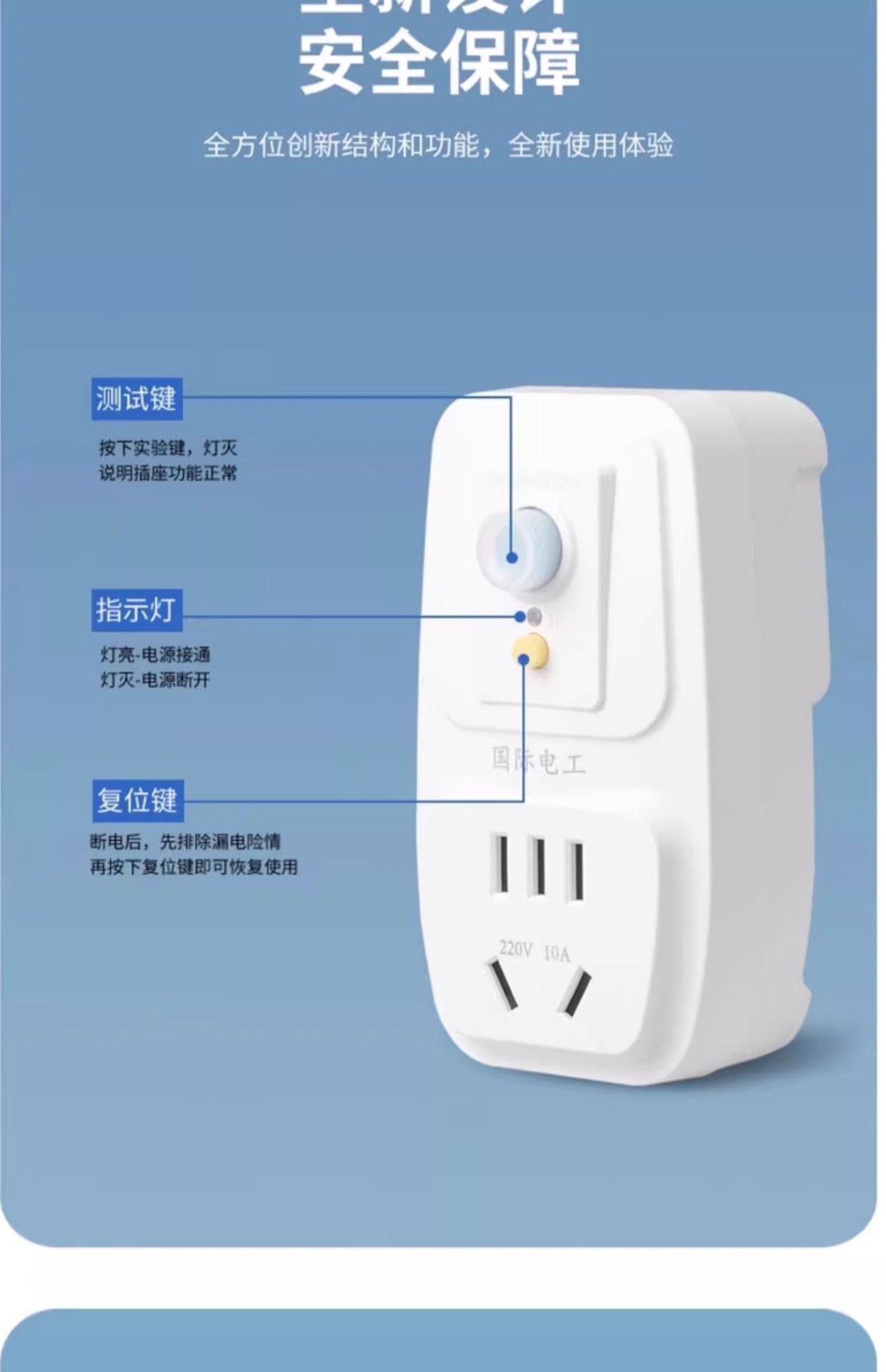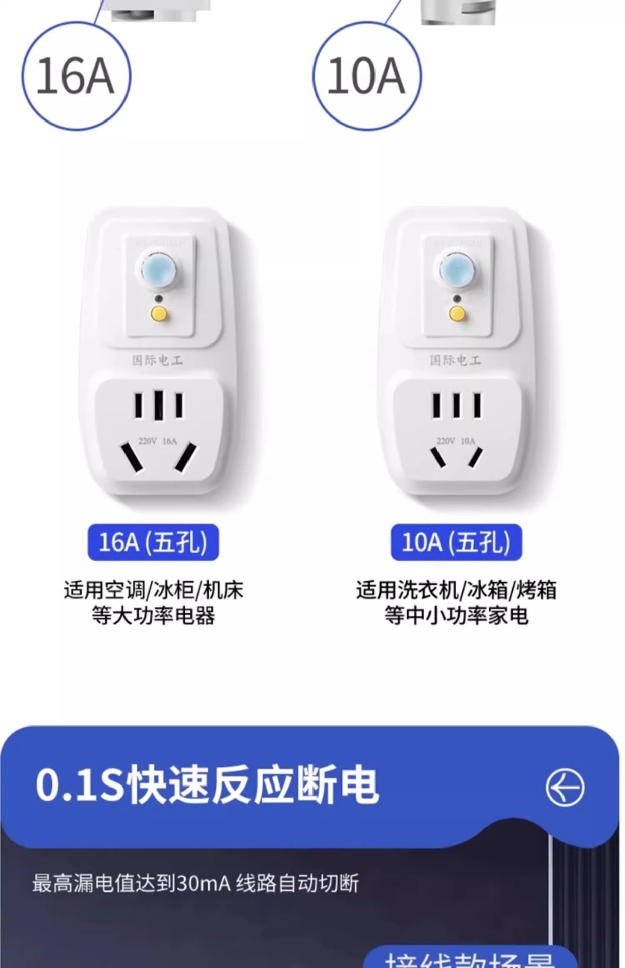 国际电工漏电保护插头16a空调10a电热水器防触电电源漏保开关插座