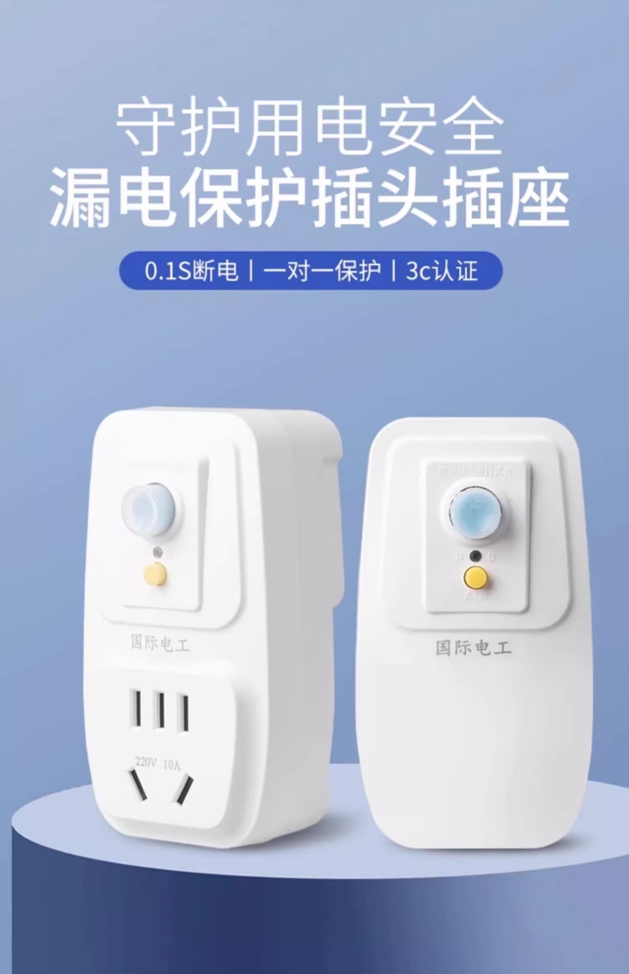 国际电工漏电保护插头16A空调10A电热水器防触电电源漏保开关插座