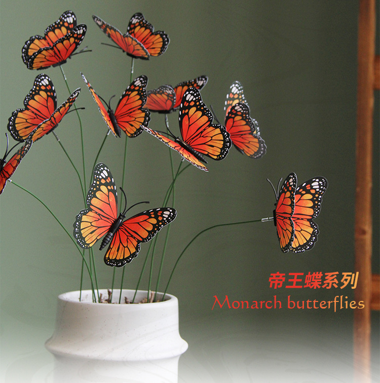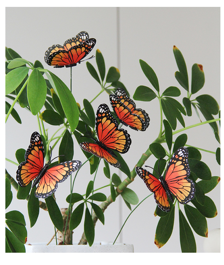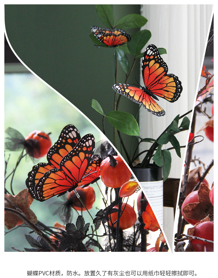 8cm/12cm橙色蝴蝶帝王蝶花园草坪装饰万圣节派对装饰