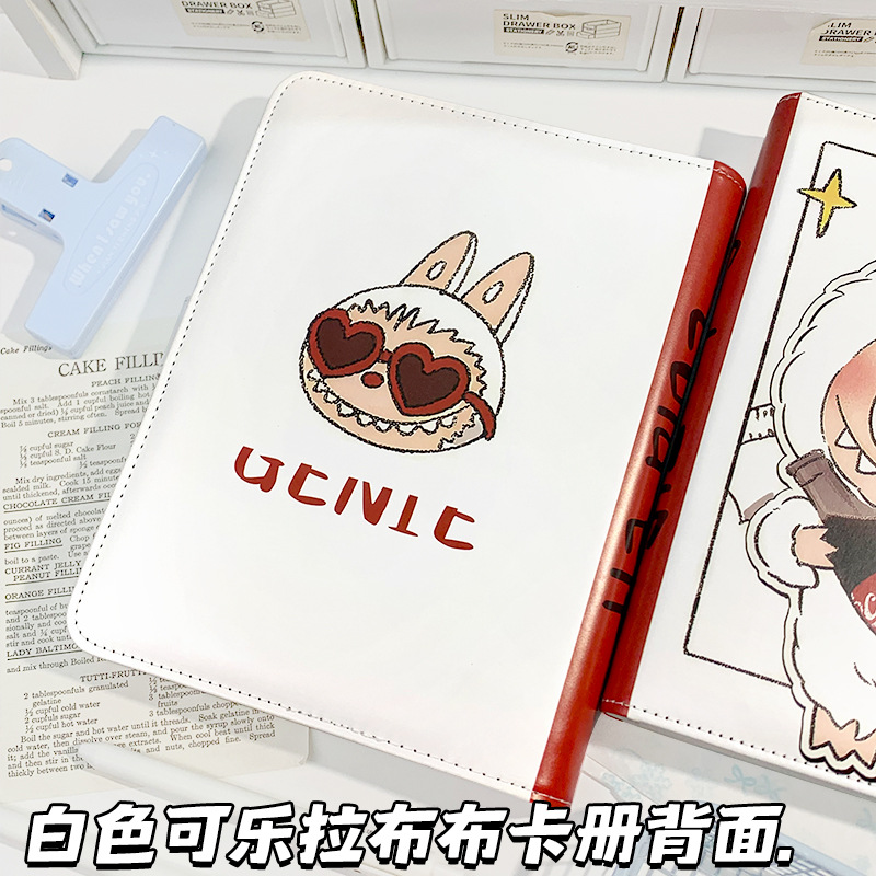 白色可乐拉布布磁扣卡册学生活页本皮质笔记本labubu小卡a5收纳册