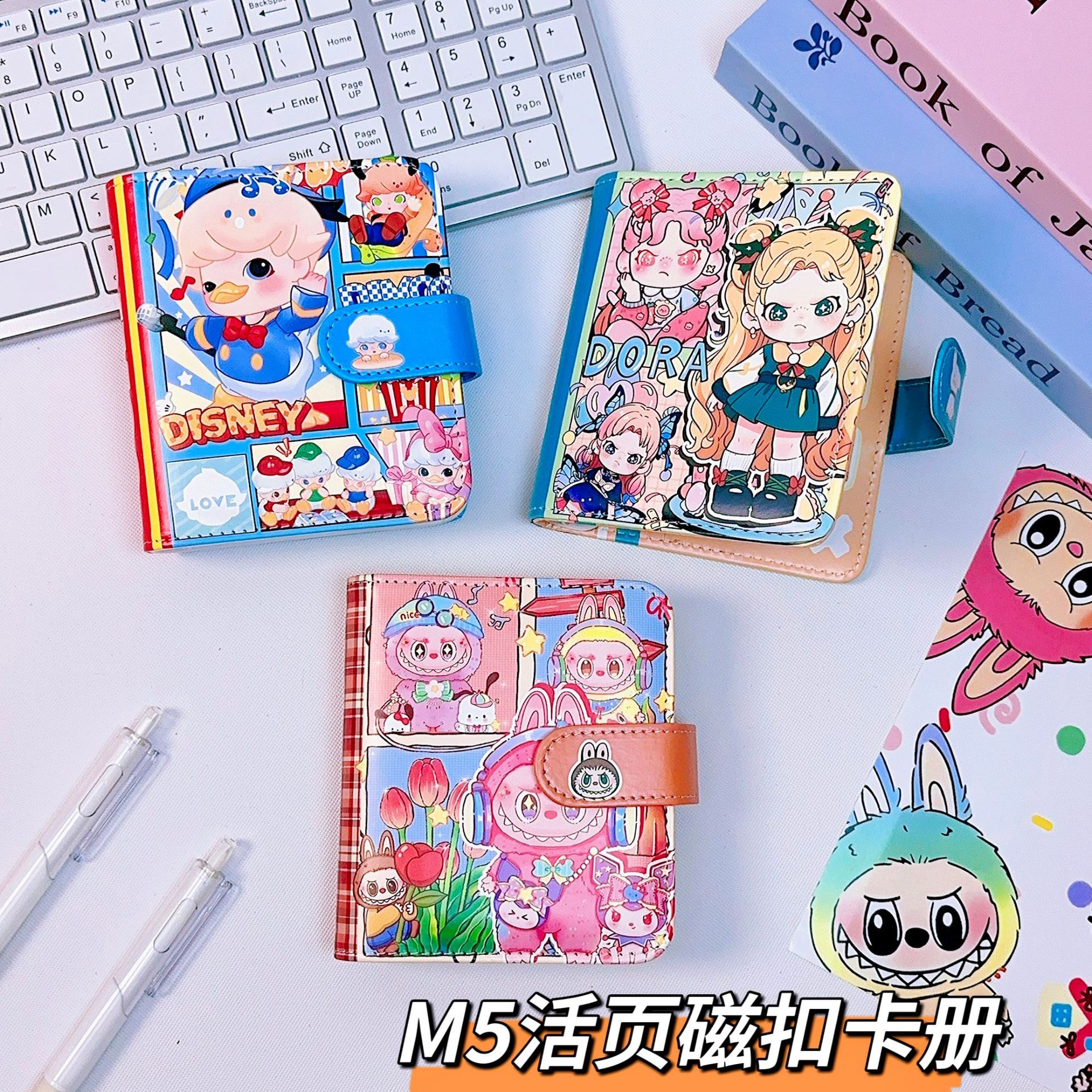 m5小卡册磁扣活页本合集pu皮质泡泡玛特sp拉布布柯南三丽鸥彩页本
