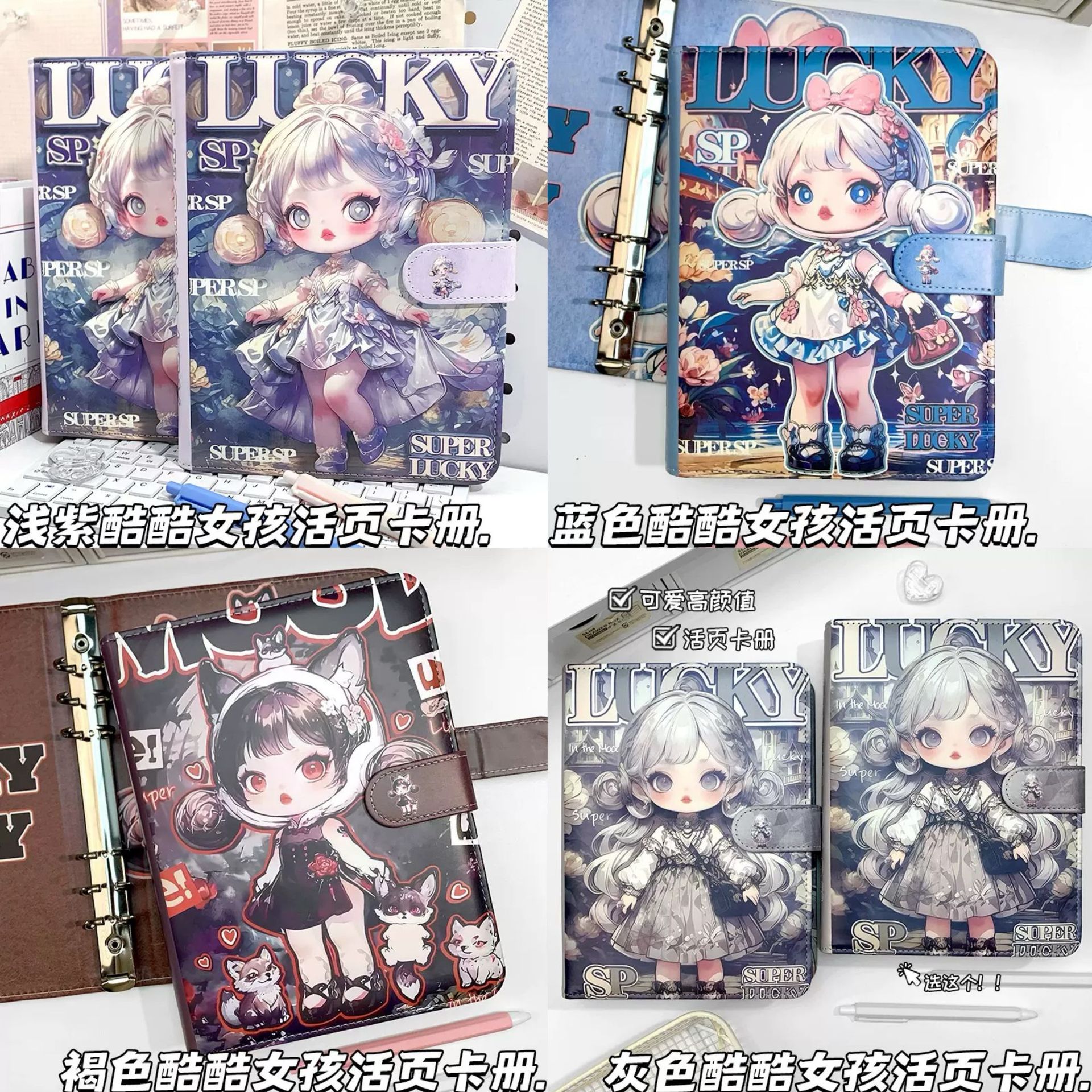 a5sp磁扣活页本泡泡玛特大表姐彩页本学生卡通笔记本日记本皮面本