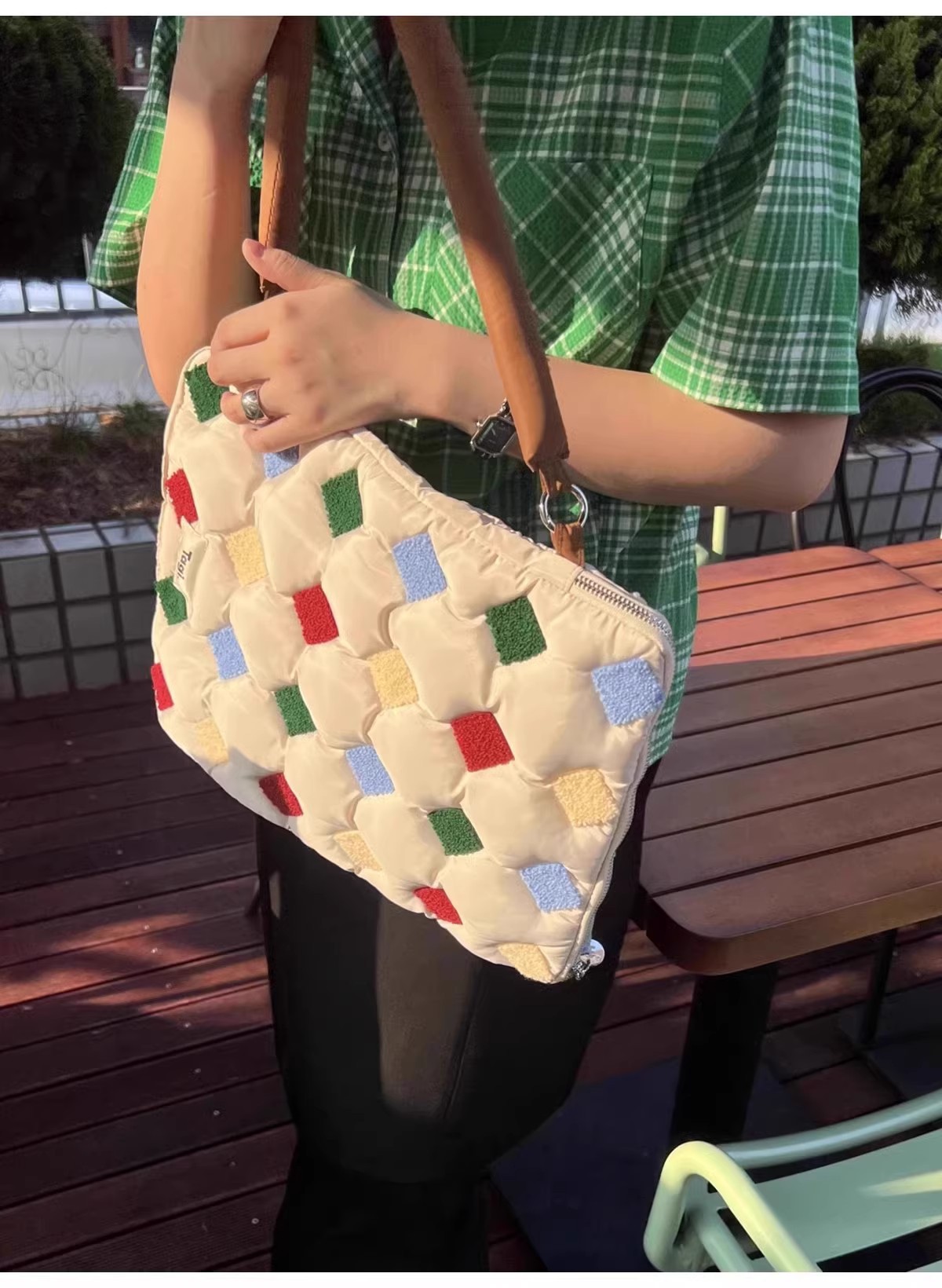 Tagi.编织小枕头刺绣手提日常休闲单肩防摔防震电脑包笔记本包