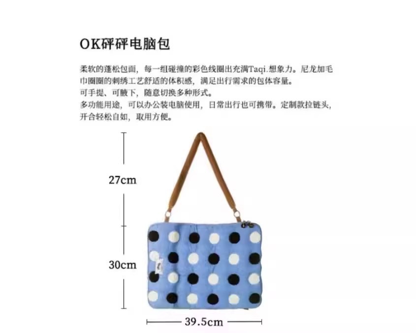 Tagi.OK电脑包"Put-put"刺绣枕头手提笔记本包游戏本便携春季通勤