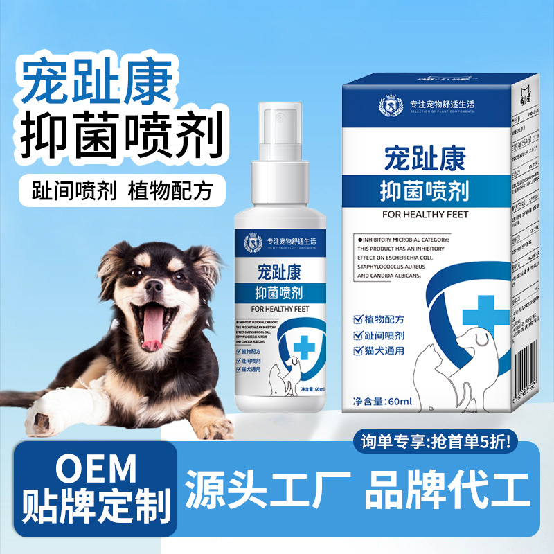 ペットの足指スプレー、抗菌洗浄剤、犬の足指の腫れや赤みに、卸売販売。