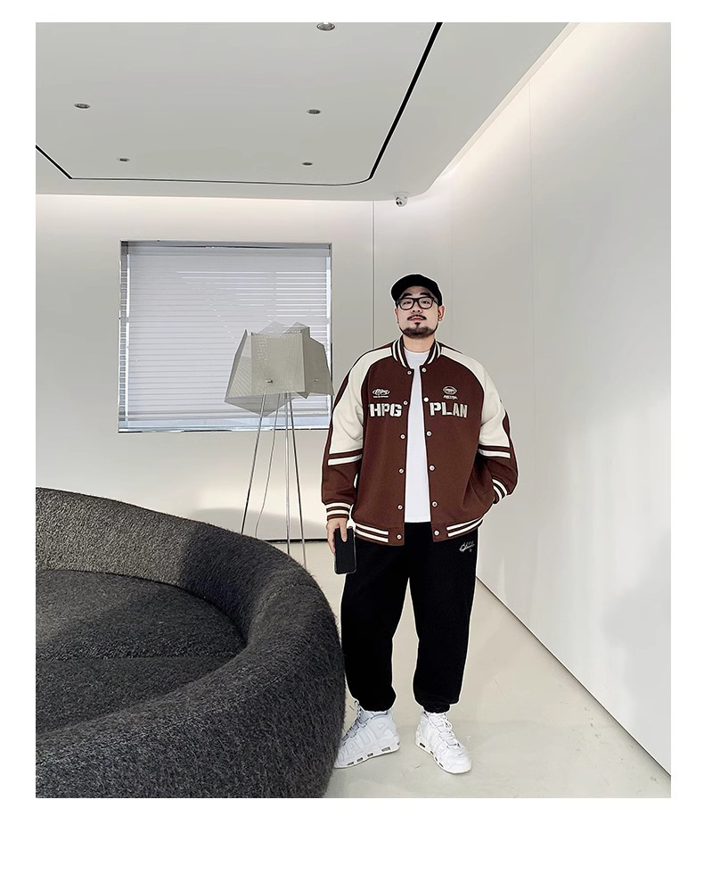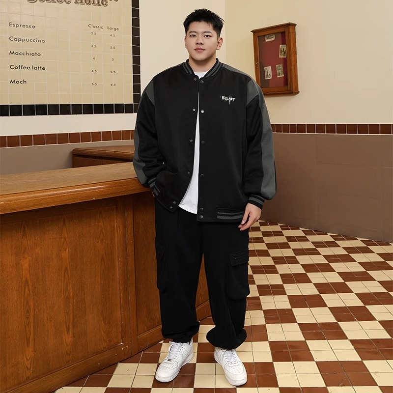 潮牌大码男装秋季新款棒球领拼接外套男胖子宽松加肥加大休闲夹克