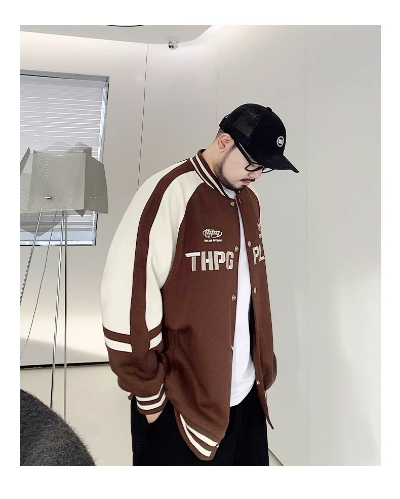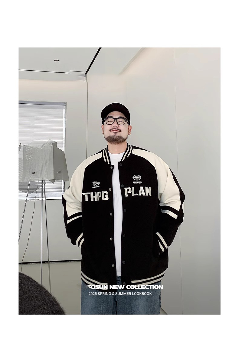 ファッションブランドの大きいサイズのメンズ野球服はコートをつなぎ合わせます。