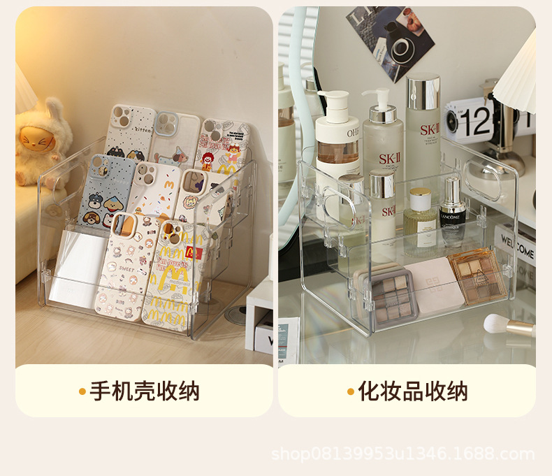 桌面化妆品收纳盒口红香水护肤品置物架面膜收纳架防尘透明梳妆台